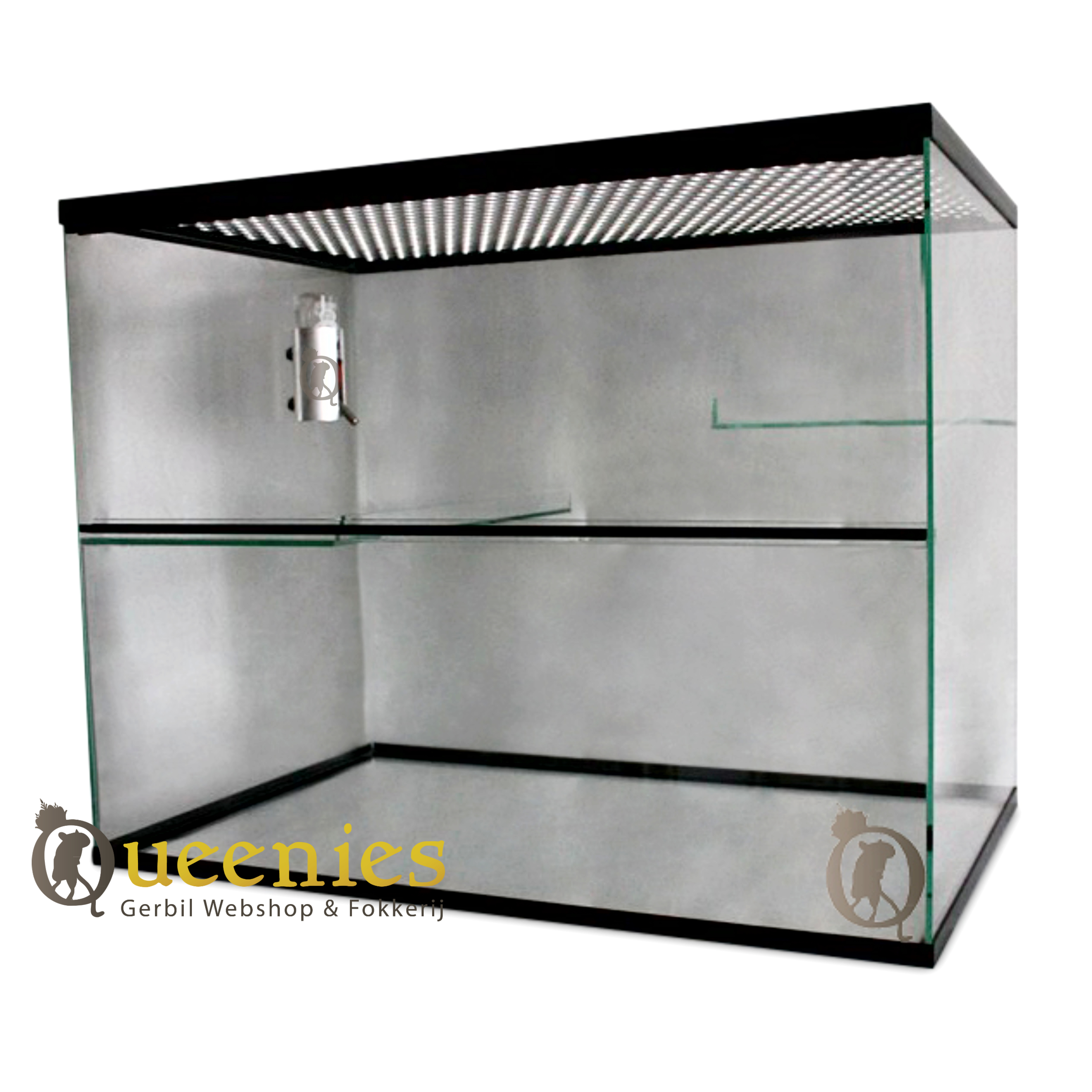 - Inclusief 2 plateaus met opstaande rand. 1 over de gehele diepte ( 40x25x2 ) van het terrarium, en 1 in de rechter bovenhoek ( 20x20x2 )