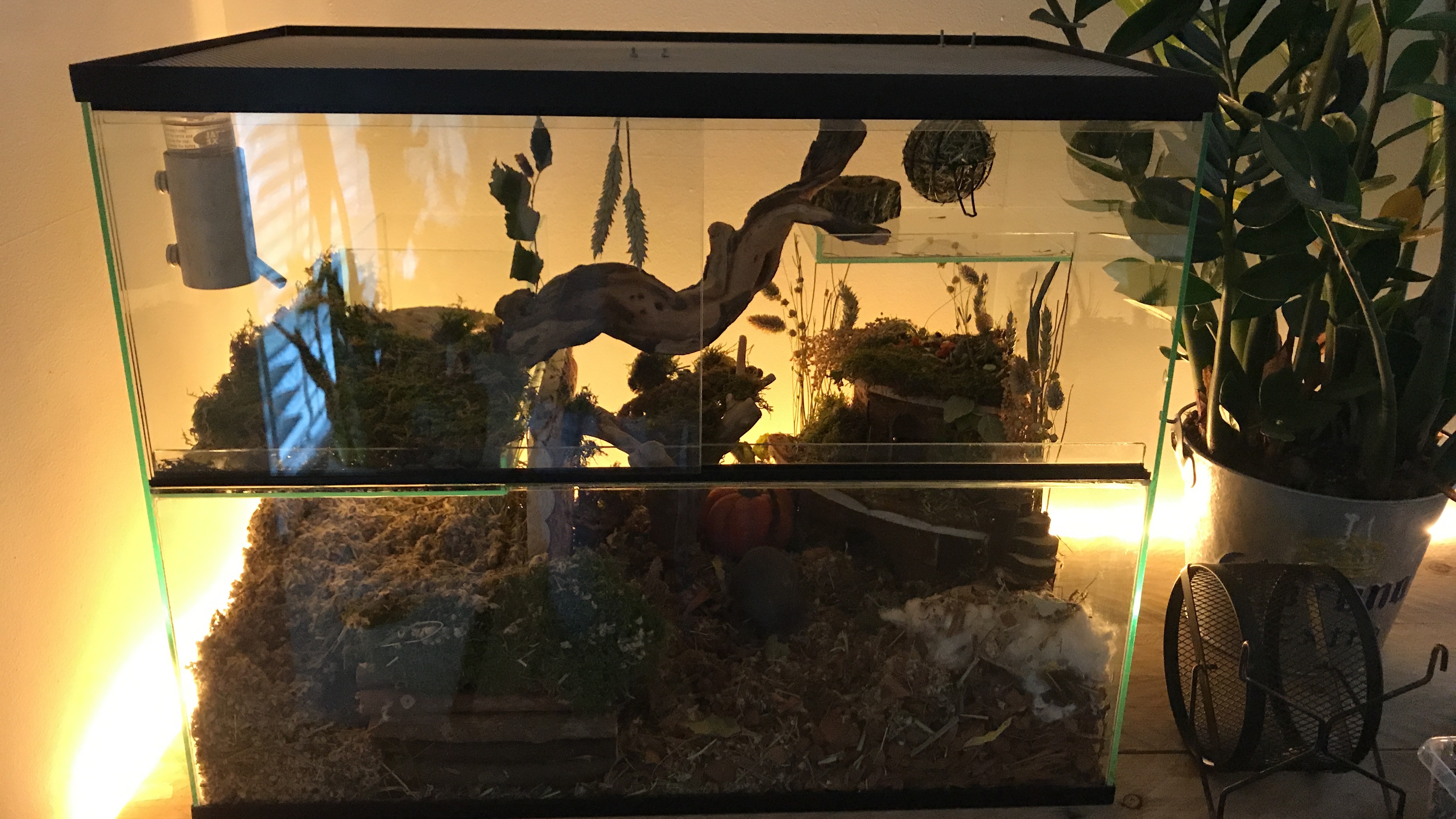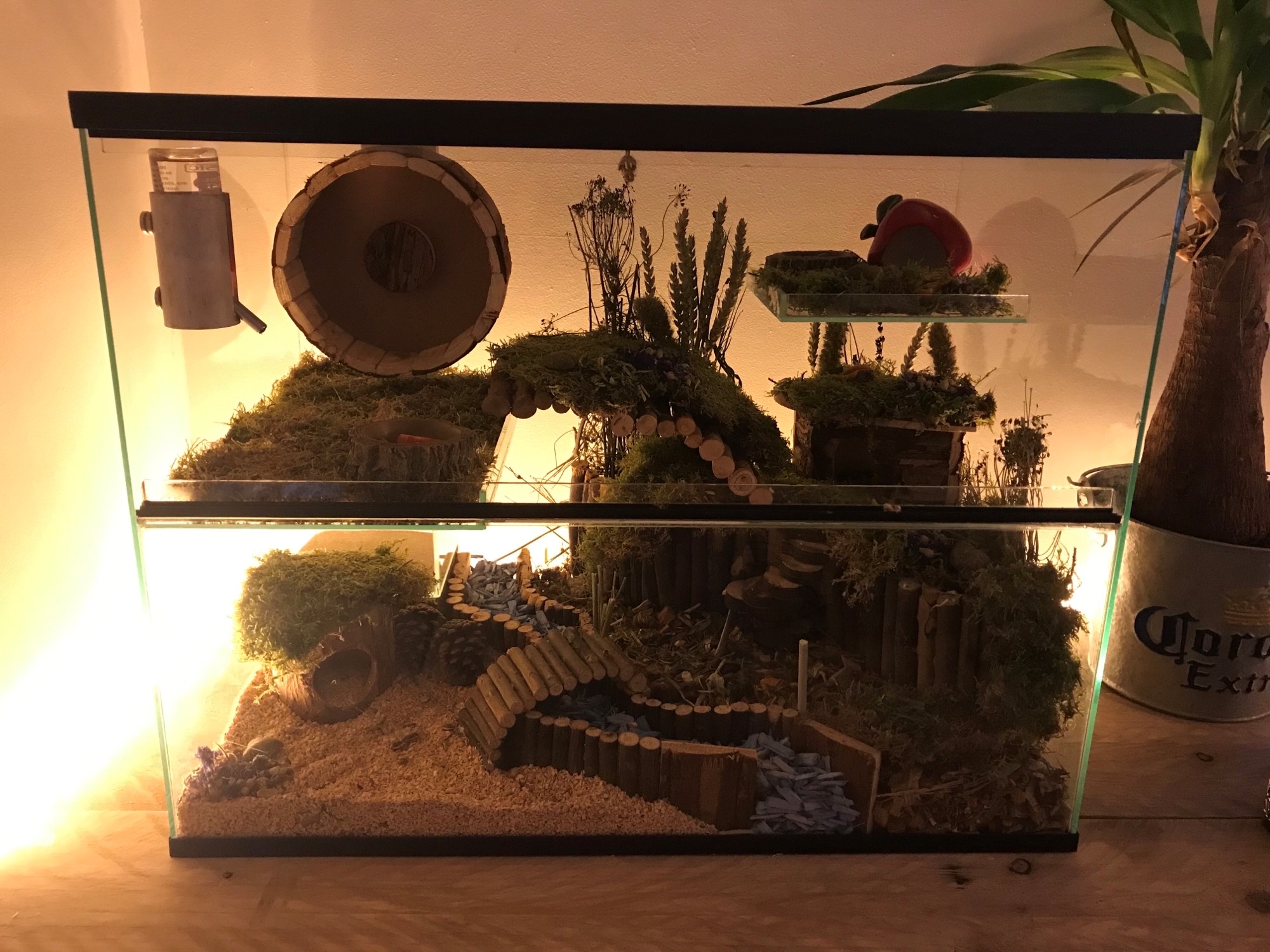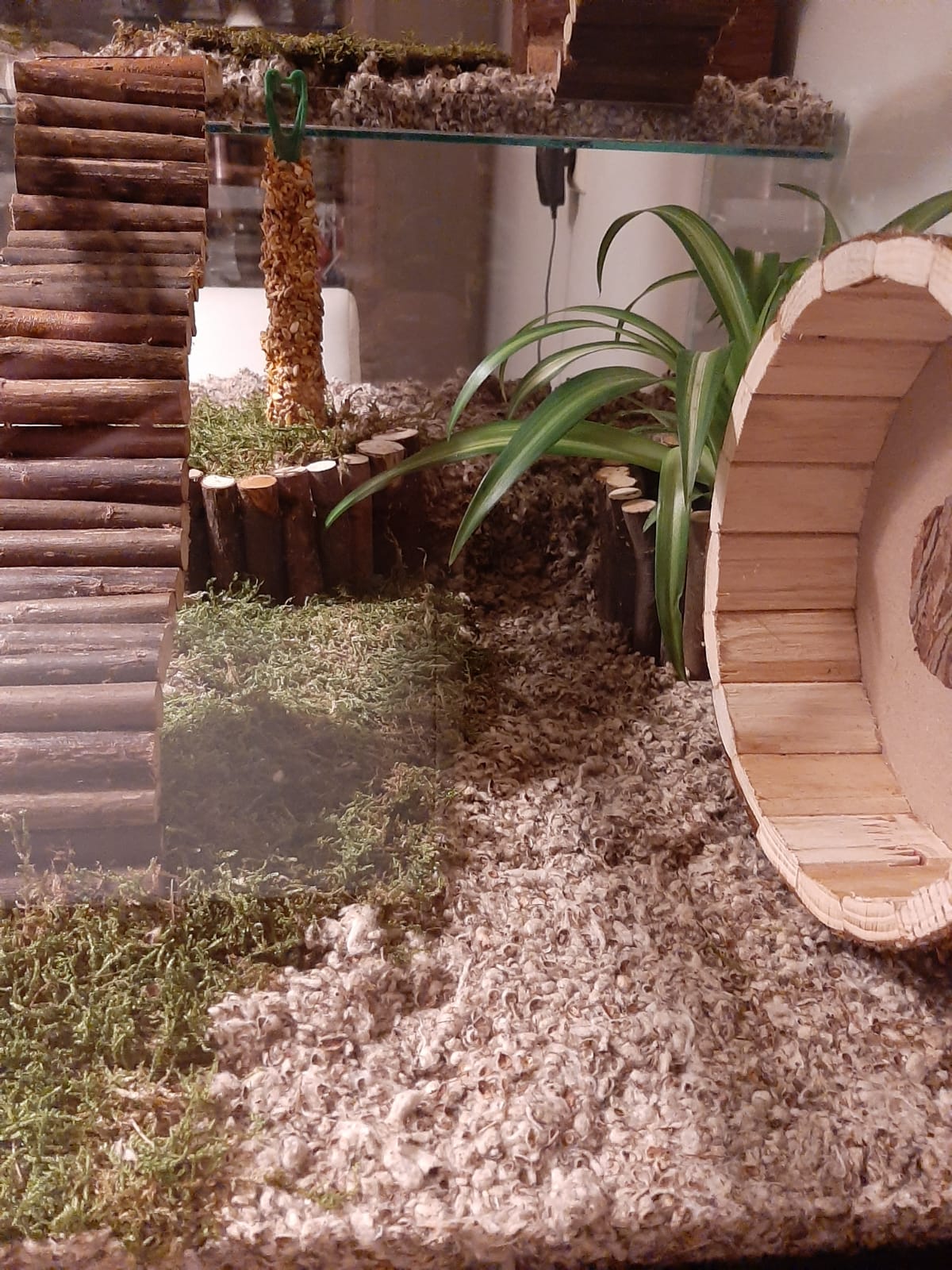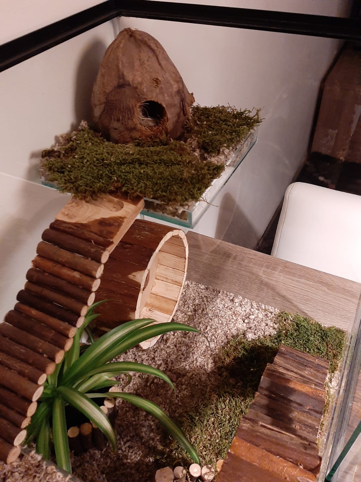 Zoals u op de foto's kunt zien is dit gerbilarium erg leuk in te richten. Omdat het net wat groter is dan de minimale afmeting kunt u ook net wat meer kanten op qua indeling van het knaagdieren terrarium.