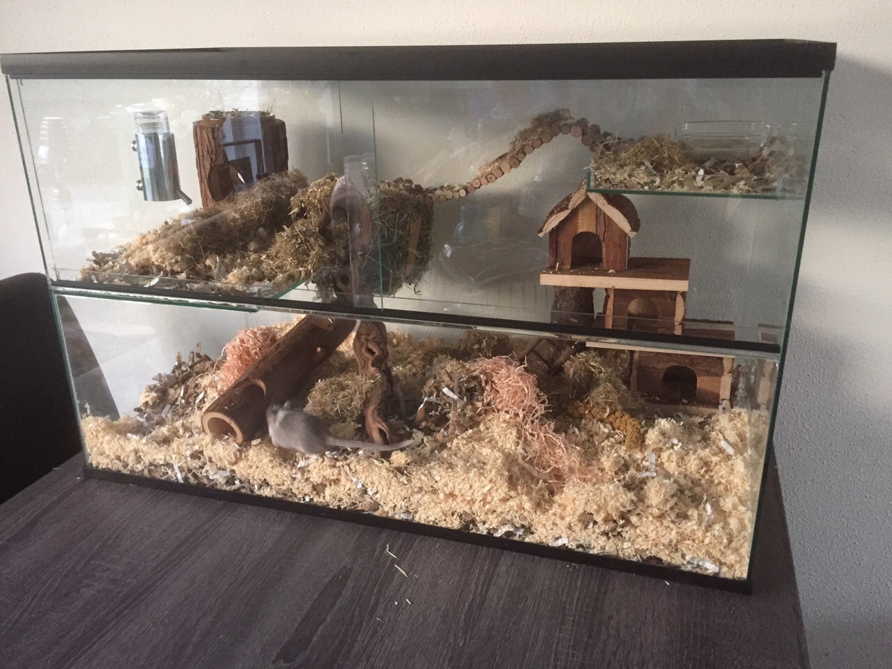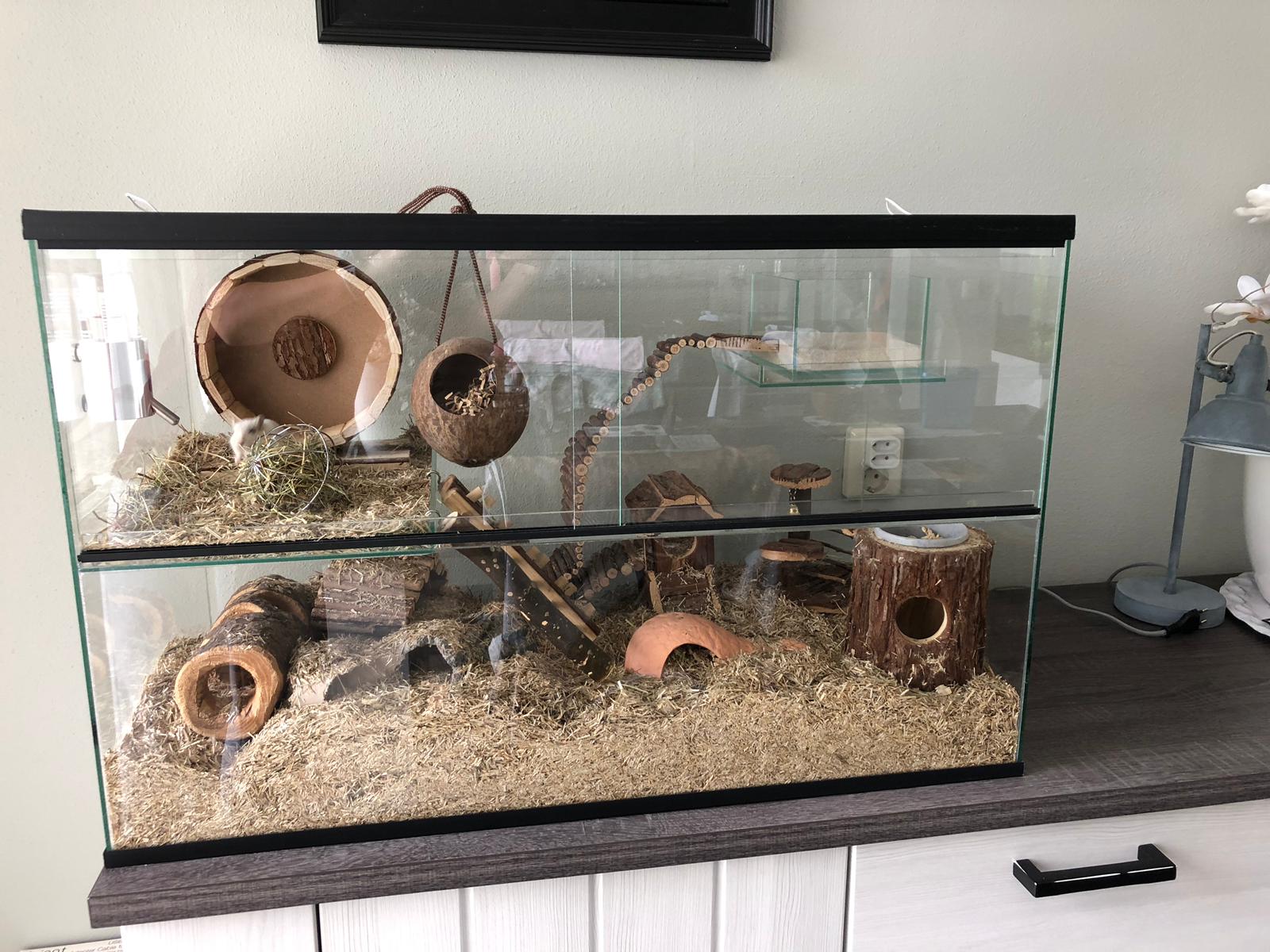 Gerbil terrarium 80x40x50 - Knaagdieren Terrarium van glas met schuifruiten