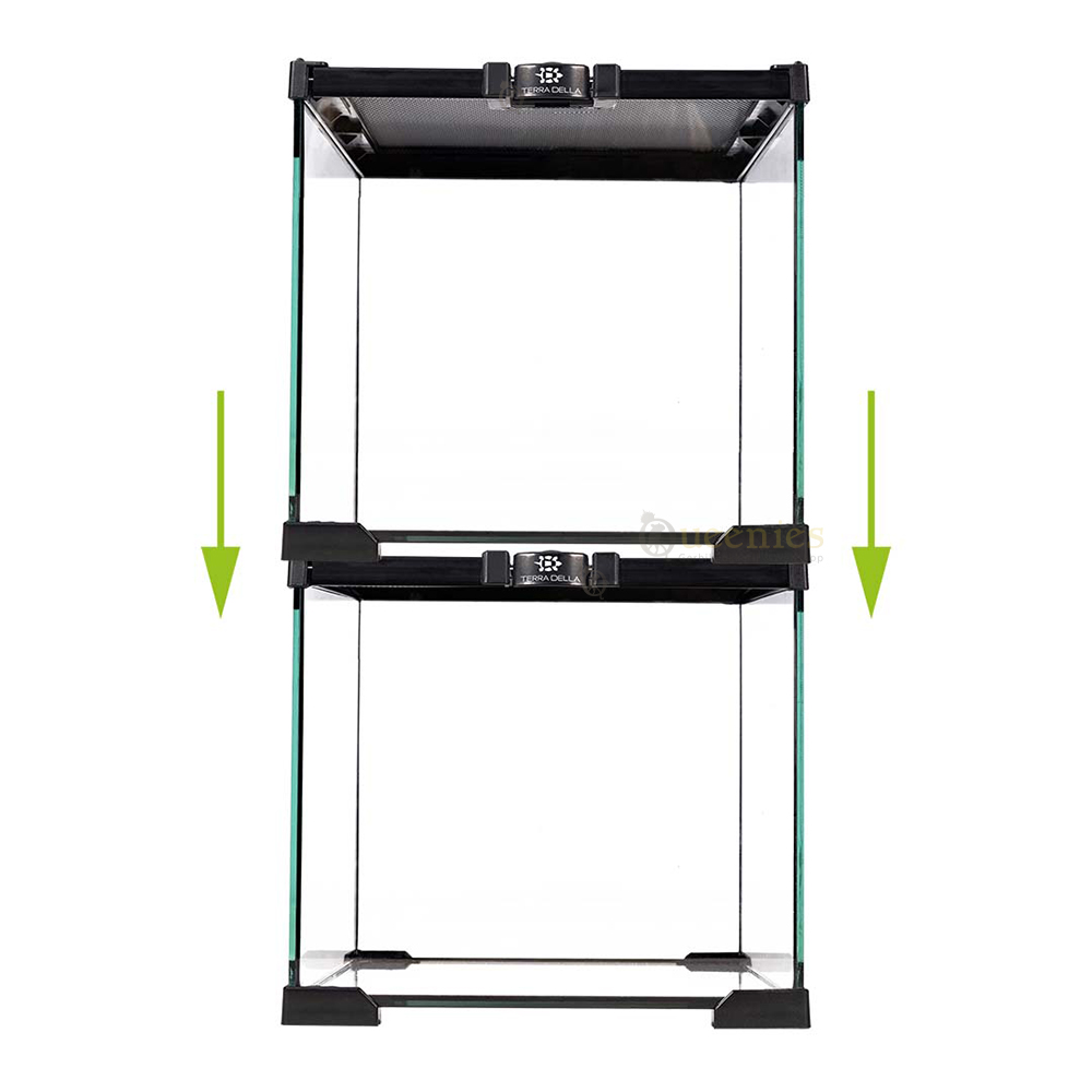Dankzij het stapelbare ontwerp is dit terrarium ideaal voor wie met meerdere opstellingen werkt. De terrariums zijn veilig op elkaar te plaatsen, wat ruimte bespaart en zorgt voor een overzichtelijke indeling, bijvoorbeeld in een kweekruimte of hobbykamer.