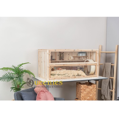 Het Houten Knaagdierenverblijf is speciaal ontworpen voor Knaagdieren zoals Muizen, Hamsters, zowel Dwerghamsters als Syrische Goudhamsters, Ratten en zelfs Cavia's + Konijnen. Wanneer u hier een dwerghamster in huisvest moet u er wel goed zorg voor dragen dat de hamster niet van de plateaus vallen. Een Dwerghamster ziet moeilijk diepte waardoor hij of zij naar beneden kan vallen. Dit moet altijd voorkomen worden.