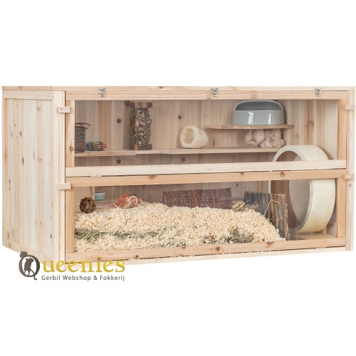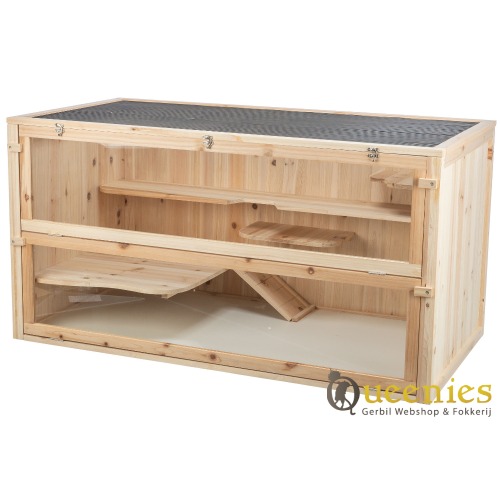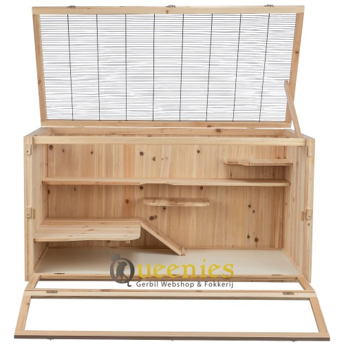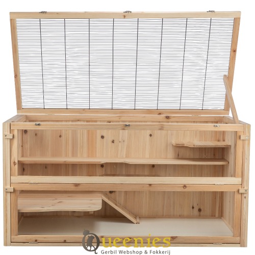 Houten Knaagdierenkooi voor Hamster, Muis of Cavia - met benadering van vooraf en openslaande deksel