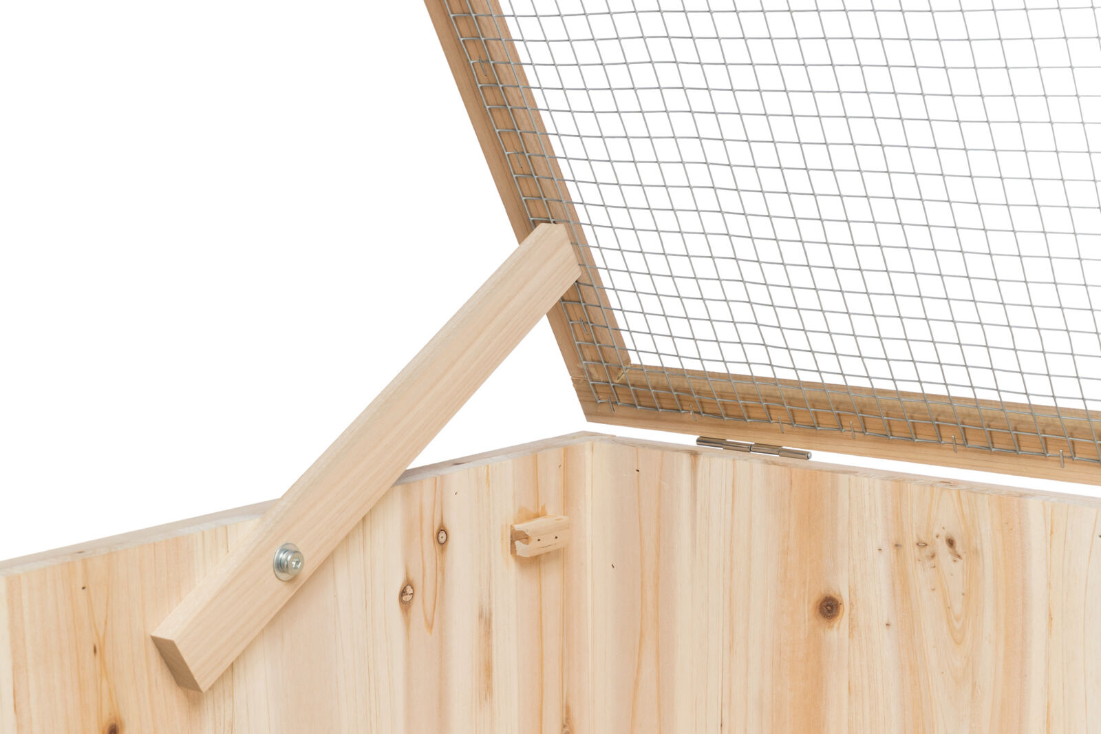 Het onderste segment zit vast, hierdoor kan er voldoende bodembedekking in deze kooi gedaan worden. Het segment wat er boven zit is opklapbaar. Hierdoor kunt u het verblijf eenvoudig reinigen wanneer ook de deksel open staat. U heeft dan veel bewegingsruimte voor de schoonmaak.