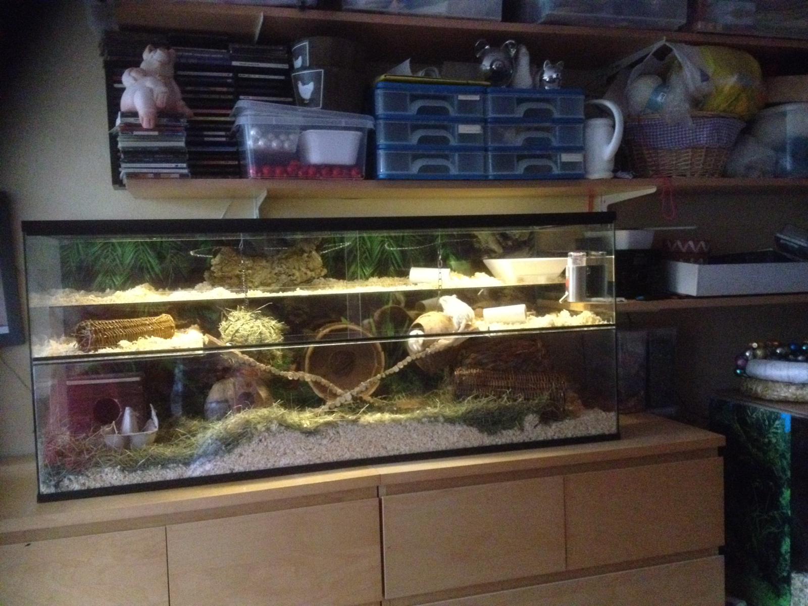 4800 vierkante centimeter ren oppervlak waarbij 2400 de minimum afmeting is voor 2 Gerbils. Een groot verblijf, een waar paradijs.