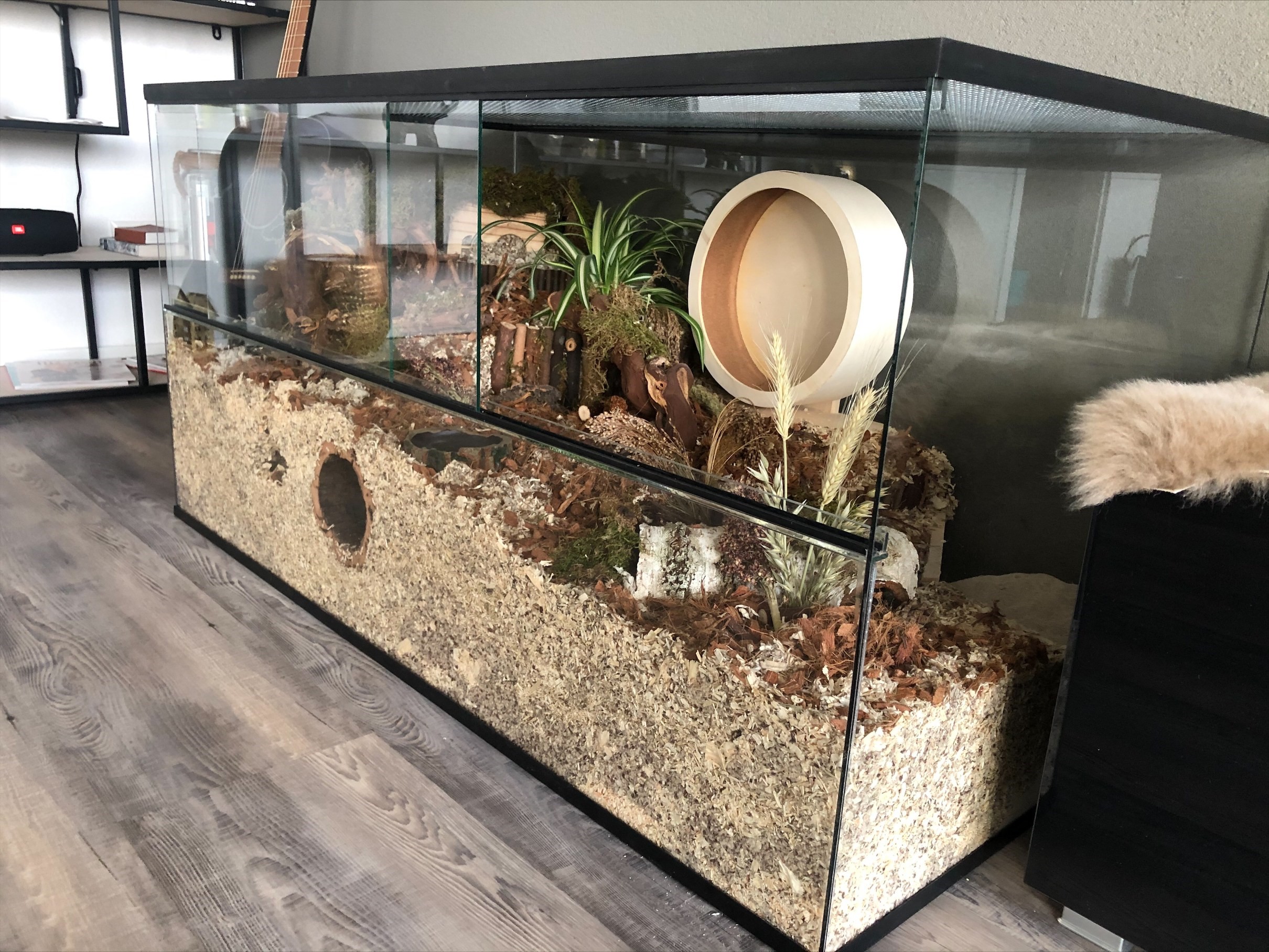 Opmaat gemaakte hokken. Dit is een impressie. Wilt u andere maten? Vraag een offerte aan, en schrijf uw gewenste maten in de offerte aanvraag. Wij kunnen alles voor u opmaat maken. 120x60x60 met schuifruiten zonder plateaus. Het is een veel gevraagde offerte voor mensen die willen gaan hamsterscapen. Onze verblijven zijn daar prachtig voor geschikt, alleen de plateaus willen deze mensen er vaak niet in hebben. Dat is natuurlijk geen enkel probleem bij GerbilShopQueenies. Wij kunnen alles voor u opmaat maken in elke gewenste afmeting en vorm!