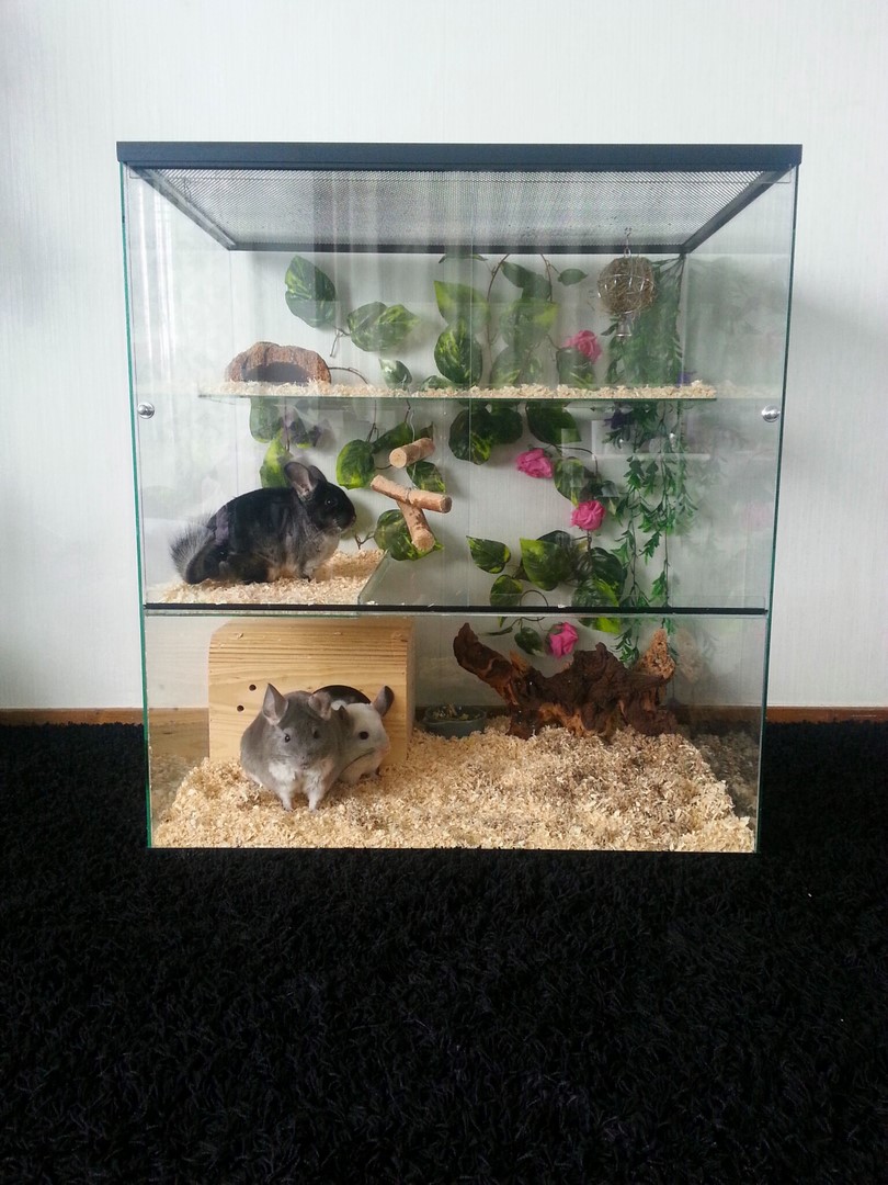 - Afneembaar deksel - Schuiframen op 40cm hoogte - Inclusief 3 plateaus met opstaande rand. 1 over de gehele diepte ( 50x25x2 ) van het terrarium, en 1 over de gehele lengte 60x20x2, ook zit er nog een plateau van 20x20x2 cm aan de rechtervoorkant. - schuifruitjes zijn makkelijk uitneembaar wat het schoonmaken vereenvoudigd aangezien u er van bovenaf en van de voorkant bij kunt. - alle profieltjes zijn beschermd tegen het knagen - Vrij gemaakt van overtollige kitranden zodat de Gerbils die ook niet weg kunnen knagen