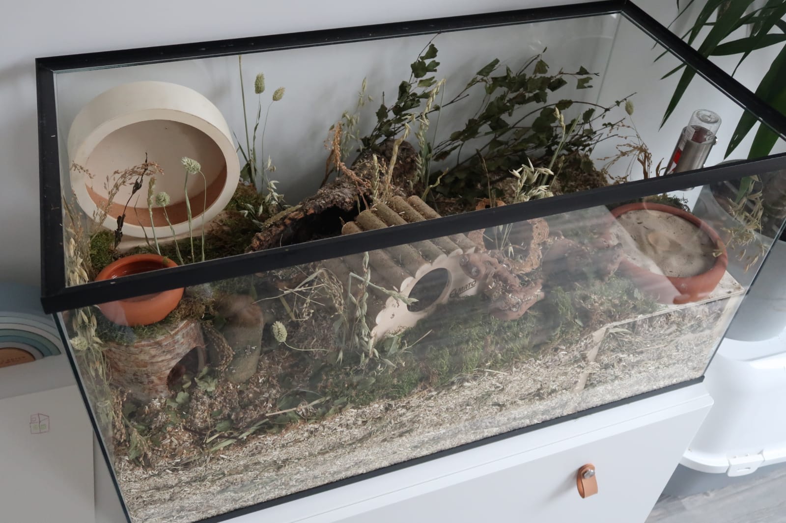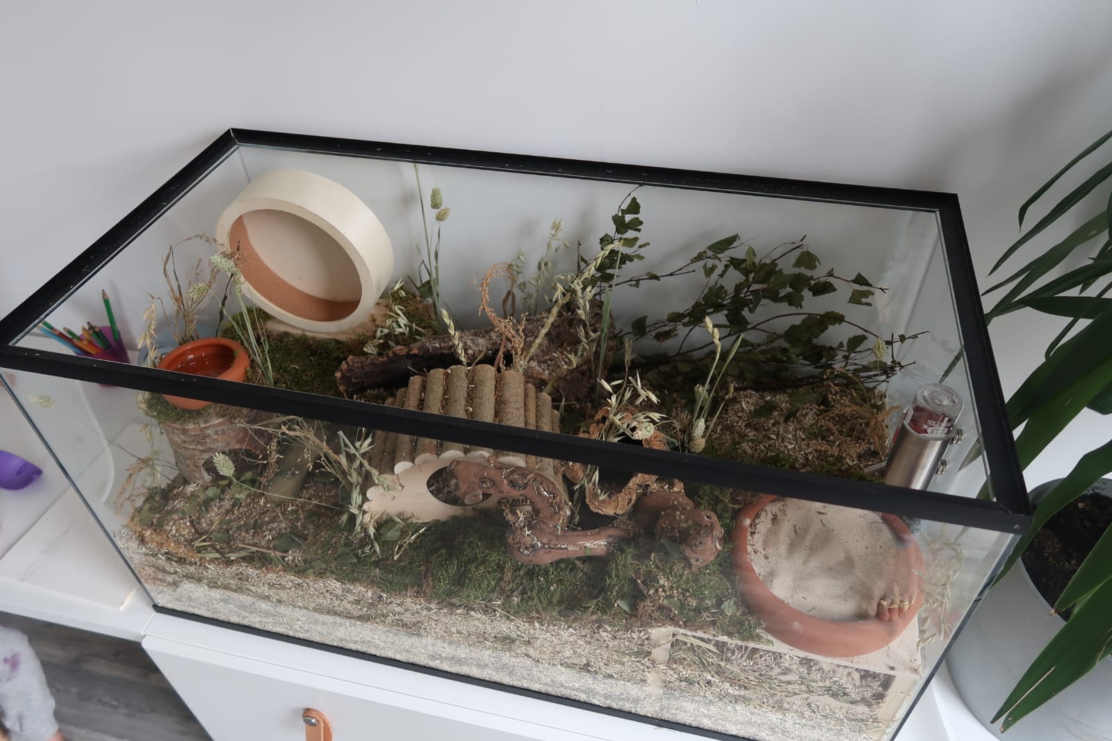 Dit 90x45x45 kooi voor hamsterscaping is eens op maat gemaakt voor een klant met deze specificaties. Daarna hebben wij dit knaagdierenkooi opgenomen in het assortiment om een impressie te geven van onze mogelijkheden als het gaat om knaagdierkooien op maat maken wanneer u wilt Hamsterscapen. Wilt u andere maten? Vraag een offerte aan, en schrijf uw gewenste maten in de offerte aanvraag. Op maat gemaakt knaagdieren terraria, Gerbilarium, of Hamsterarium ( hamster terrarium ). Hamsterarium is een Hamster terrarium. Dit 90x45x45 Knaagdierenkooi was voor een Russische Dwerghamster. Het baasje heeft er een schitterende hamsterscaping van gemaakt! Wij kunnen alles voor u opmaat maken!