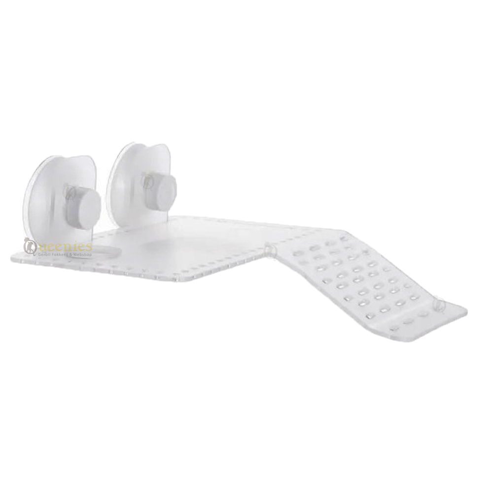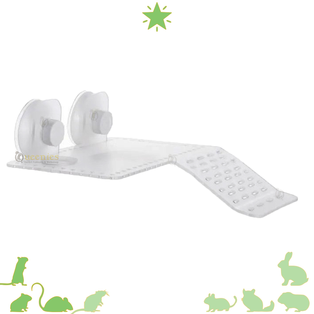 Kleine versie met één zuignap Ideaal voor kleinere Terrariums en minder intensief gebruik. De enkele stevige zuignap maakt het eenvoudig om de Trap te bevestigen op gladde oppervlakken zoals glas en kunststof. Deze compacte versie biedt Schildpadden of Knaagdieren extra klimruimte zonder veel ruimte in beslag te nemen.