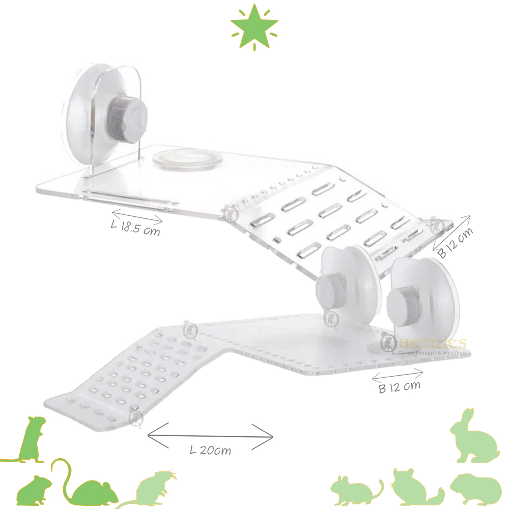 Inhoud: 1 stuk Afmetingen: Klein: 1 zuignap 18.5 x 12 cm ( L x B ) | Groot: 2 zuignappen 20 x 12 cm ( L x B ) Geschikt voor: Schildpadden, Knaagdieren, Gerbils, Hamsters en Muizen
