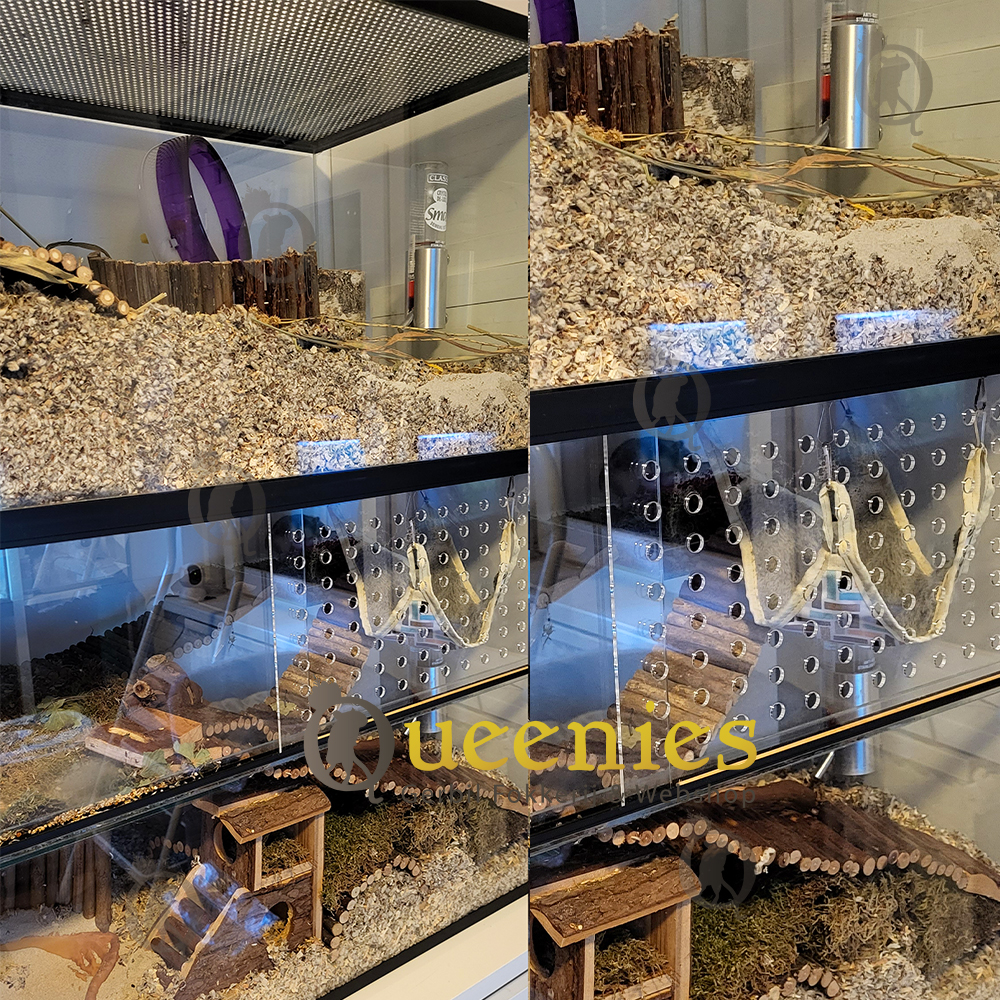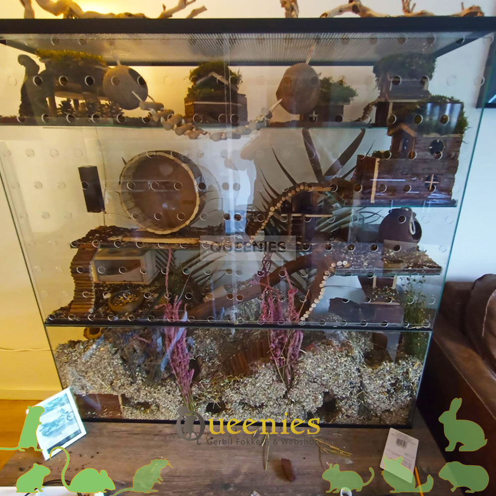 Ventileerbare Schuifruiten die voor nog meer ventilatie zorgen in een Knaagdieren Terrarium van Queenies. Het is al onze grote kracht dat wij Terraria maken voor Knaagdieren met 100% ventileerbare deksels, maar alsnog krijgen wij wel eens de vraag of het voldoende ventileert, met name wanneer mensen een opzetstuk erop willen zetten. Bij Gerbils hoeft er niet veel geventileerd te worden omdat het dieren zijn die weinig plassen. Een Hamster Terrarium ventileert ook altijd voldoende omdat daar weer nooit een opzetstuk op wordt gezet. Maar een Ratten Terrarium zou zeker meer ventilatie mogen hebben omdat deze dieren veel meer urineren. Daar hebben wij nu de oplossing voor! Ventileerbare schuifruiten!