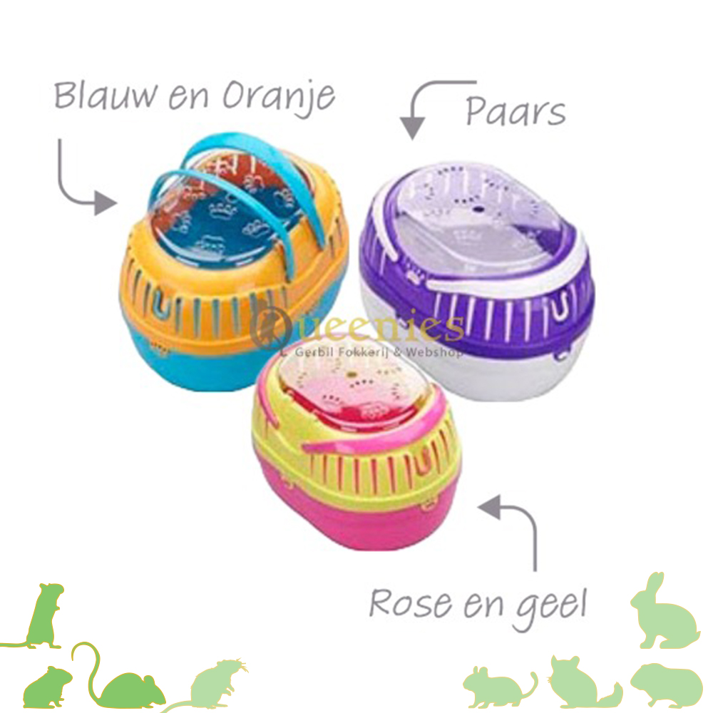 Handige tansportbox met een mooi uiterlijk. Het is altijd goed om een transportbox in huis te hebben. Zo kunt u daar tijdelijk de Gerbils in plaatsen als u hun terrarium gaat schoonmaken, of als u onverhoopt met uw Gerbil naar de dierenarts moet. De kleurrijke transportbox Touring van EBI is ideaal voor transport van kleine dieren. Het is gemaakt van kunststof waardoor de oppervlakken eenvoudig schoon te maken zijn. De ventilatieopeningen zorgen voor voldoende luchtcirculatie. De box is voorzien van een handvat zodat deze makkelijk te vervoeren is.