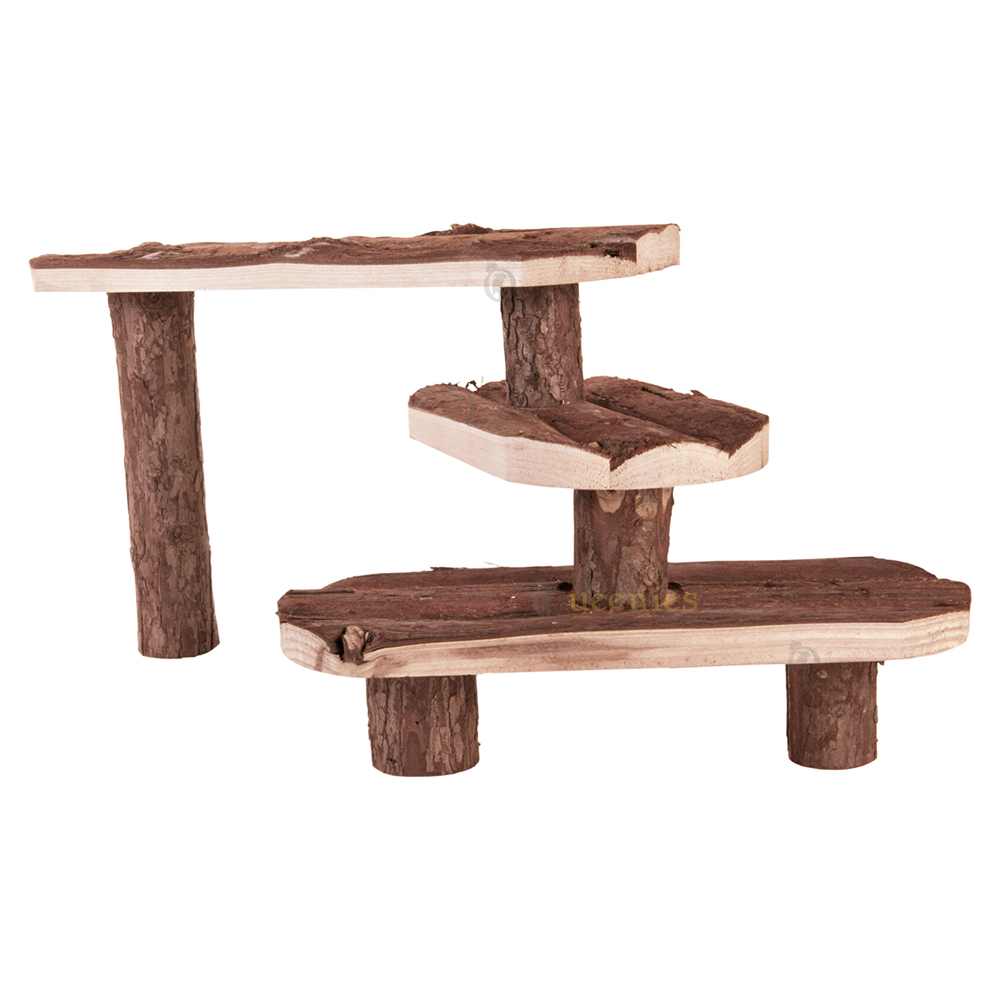 Hamsterscaping of Gerbilscaping bekent dat u de natuurlijke omgeving van het dier wat u in de kooi houdt wilt nabootsen. Sinds het fenomeen 'hamsterscaping' wordt dit product veelvudlig gebruikt in combinatie met Kurk & Mos. U kunt dit Dubbel Plateau van Hout half onder de bodembedekking ingraven zodat er ook nog een ondergrondse kelder beschikbaar komt voor uw hamster of Gerbil. Het Plateau van hout of Houten plateau voor knaagdieren is een leuke toevoeging aan uw hamsterscape waarbij altijd gebruik wordt gemaakt van natuurlijke producten.