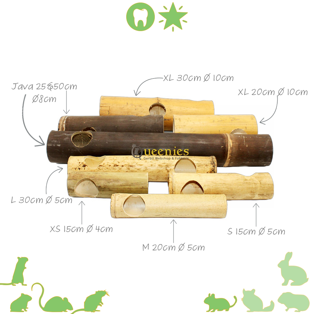 De bamboe tunnel kan heel leuk gebruikt worden als tunnel voor kleine maar ook grotere knaagdieren zoals Degoes en Syrische hamsters. Het is wel belangrijk om de openingen in de gaten te houden voor welk die u het wilt gebruiken. Zo zal de maten XS, S, M en L niet groot genoeg zijn voor een Syrische hamster of een Degoe. Welke diameter de tunnel heeft is allesbepalend voor welk dier u het gebruiken kunt. Ook hebben wij naar de tunnelgaten gekeken en rekening gehouden in ons advies voor welk dier u het gebruiken kunt.