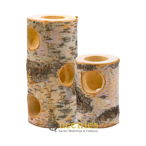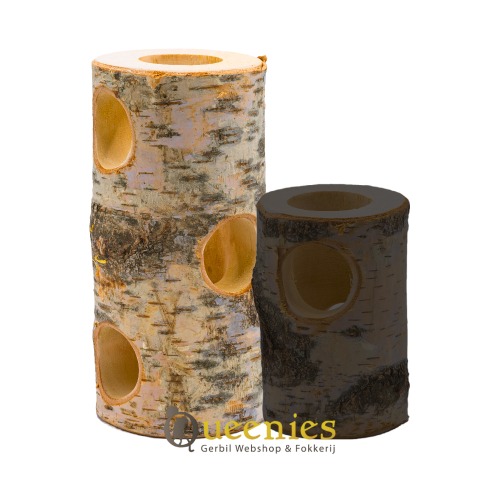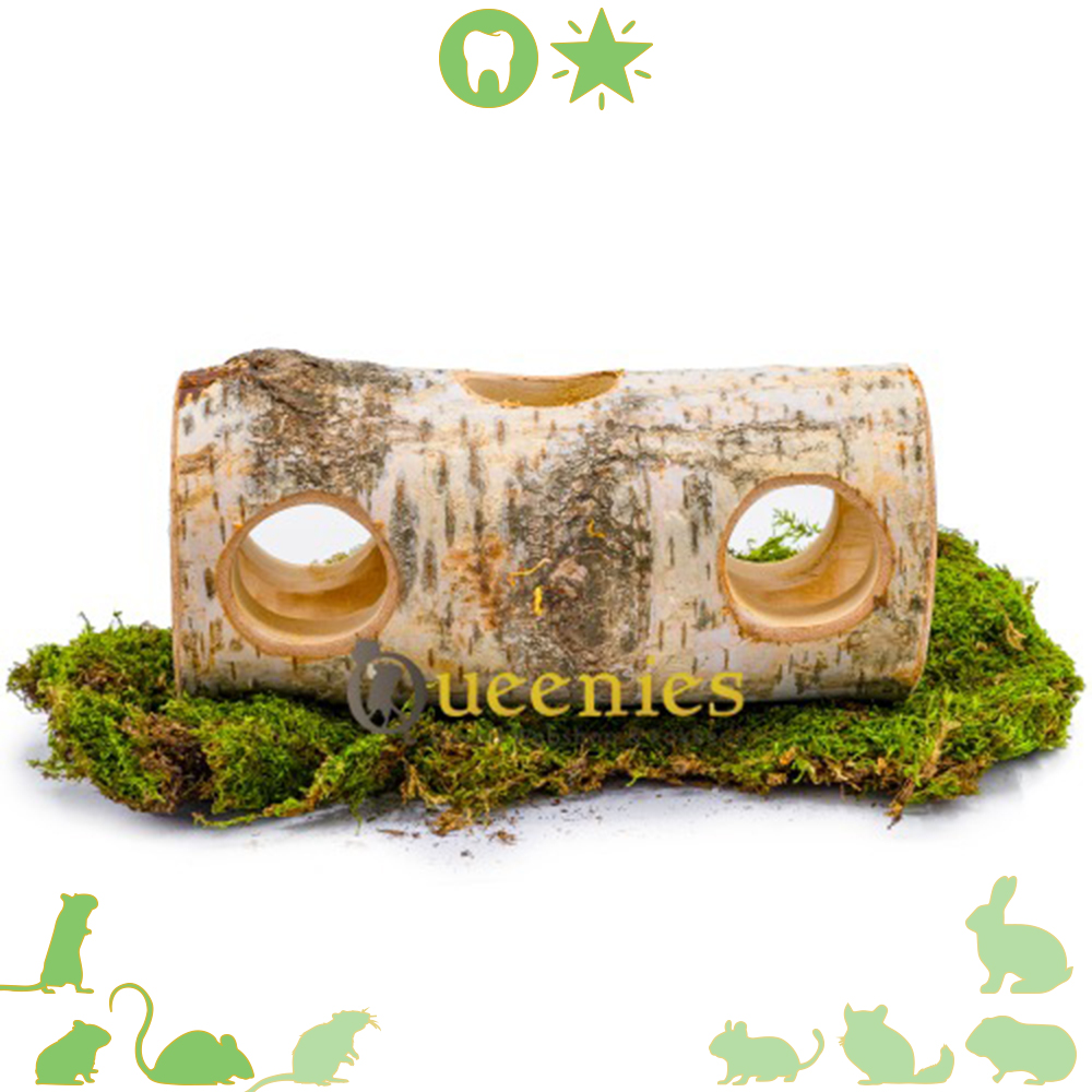 Deze berkentunnel biedt een ontzettend mooie en veilige schuilplaats voor Hamsters en Gerbils! Juist doordat deze tunnel meerdere gaten heeft geeft dit veel veiligheid bij een Knaagdier. Dat komt omdat kleine Knaagdieren in de natuur prooidieren zijn. Zij zijn in de natuur dus non stop bezig het met graven van tunnels met meerdere in en uitgangen. Want als er maar 1 in en of uitgang is zit je snel ‘als een rat in de val’