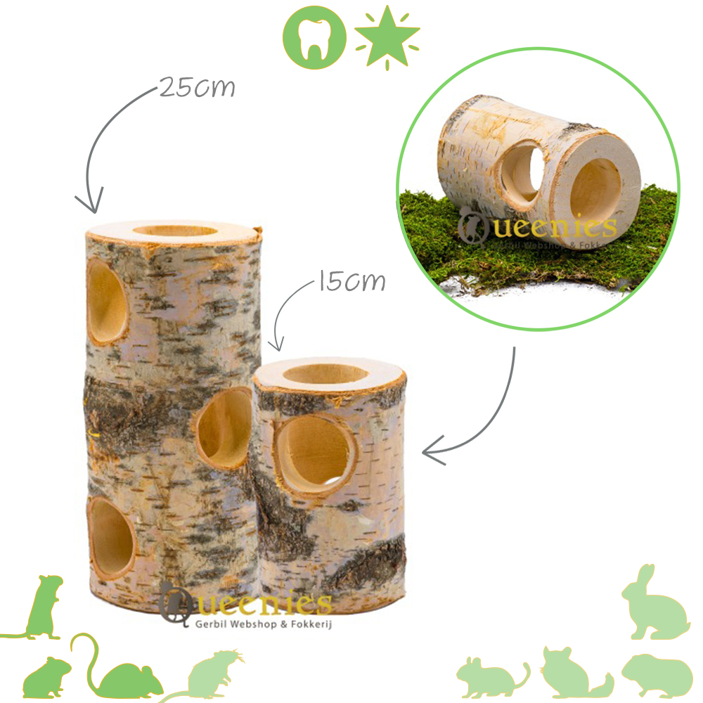 Geweldige Berkentunnel met meerdere gaten. Super verfijnd afgewerkt zonder splinters en mooie grote openingen waardoor Gerbils en Dwerghamsters doorheen kunnen kruipen! We zijn altijd op zoek naar spannende en leuk accessoires voor jullie Dwerghamsters en Gerbils, dit is weer zo’n artikel die echt een musthave is voor in het Hamster Terrarium of Gerbilarium! Iets speciaals omdat het echt super verfijnd is afgewerkt zonder 1 braam of splinter, met robuuste knotsen in de tunnel die van de Berkenboom afkomstig is. De Berkentunnel met Meerdere Gaten, dé tunnel voor een magische doorgang naar een wereld vol plezier! Deze Knaagdieren accessoires moeten jullie echt gaan ontdekken om onze harige viervoetertjes kennis te laten maken met deze tunnel. We leggen uit waarom deze Berkentunnel zo geweldig is en waarom jullie Hamsters en Gerbils er dol op zullen zijn!