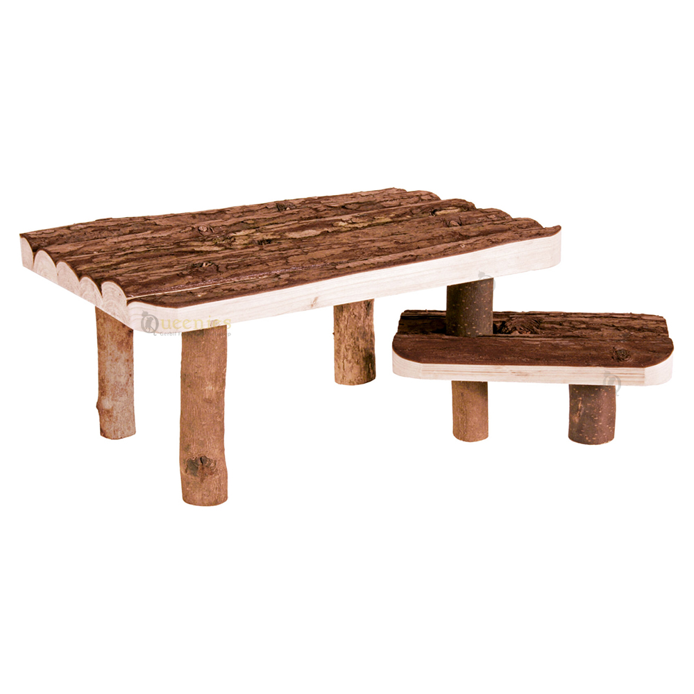 -  Noreen: In de logeerbak had ik geen glazen plateautjes, daarom deze houten plateau besteld. Is erg stevig, en knaagbestendig door de dikke poten. Het voer en zandbadje staan nu hoger, en onder blijft lekker veel ruimte om te graven en ravotten. Zeer tevreden.