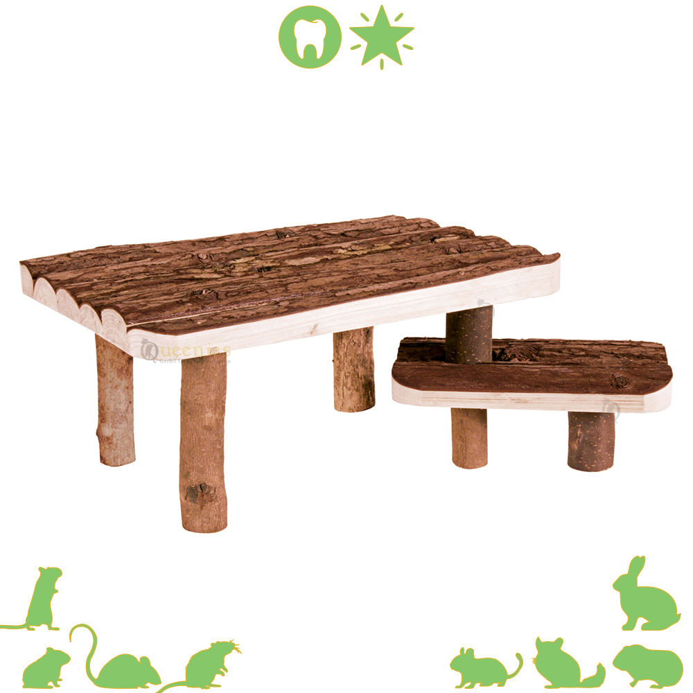 Voor Gerbils zijn ondergrondse tunnelsystemen van groot belang en komt dicht bij de natuurlijke omgeving van de Gerbils die in de vrije natuur voornamelijk gangenstelsels graven. Dit Dubbel plateau van hout helpt dus erg bij de stevigheid en ontwikkeling van deze ondergrondse tunnelsystemen. Ook bij Hamsters zijn gagenstelsels van groot belang. Gerbils en hamsters zijn prooidieren, dit betekent dat ze voornamelijk ondergronds leven om niet ten prooi te vallen. Wanneer een dier ondergronds leeft zal het veel tunnelsystemen moeten maken om voedsel te kunnen vinden en zich te kunnen begeven naar ander grondgebied.