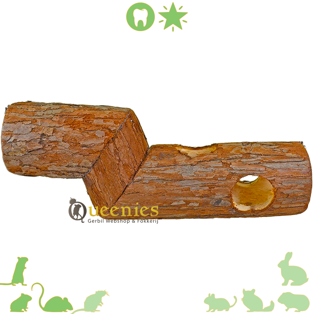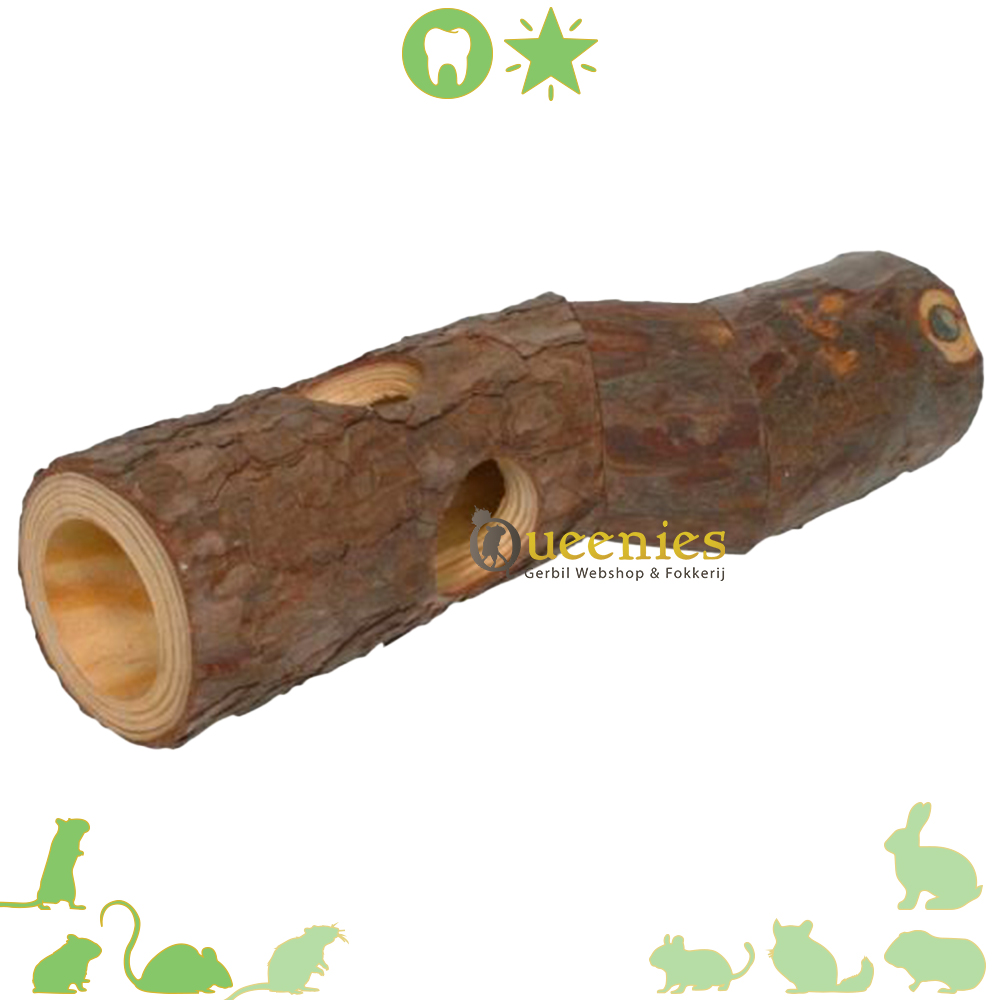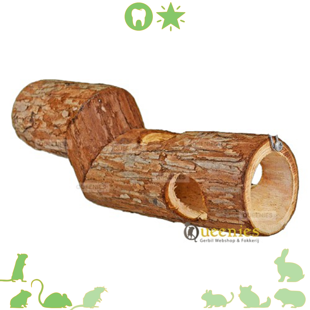 Voor de kleinste knaagdieren zoals Gerbils, kleine dwerghamsters en Muizen is de holle boomstam een ideale verstopplek. De dieren kunnen er vrij eenvoudig doorheen kruipen.Leg de hoektunnel bijvoorbeeld voor hun slaaphuisje waardoor ze hun natuurlijk gedrag kunnen vertonen!
