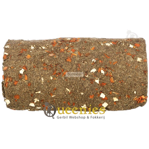 Inhoud: 200 gram Afmeting: 13 x 14 x 25 cm Opening: Ø 12 cm Samenstelling: Hooi ( 85% ), aardappelzetmeel, Pstinaak ( 2,5% ), Wortelen ( 2,5% ) Geschikt voor: Knaagdieren zoals Gerbils, Hamsters, Dwerghamster, Goudhamster, Ratten, Muizen, Degoes.