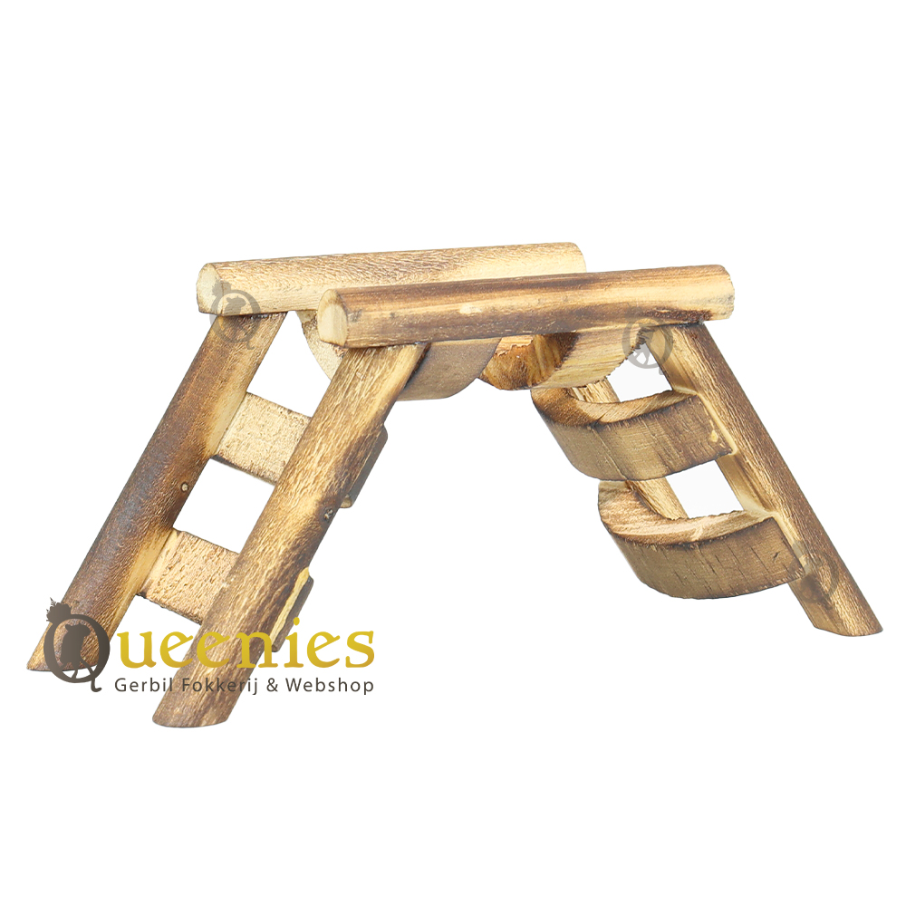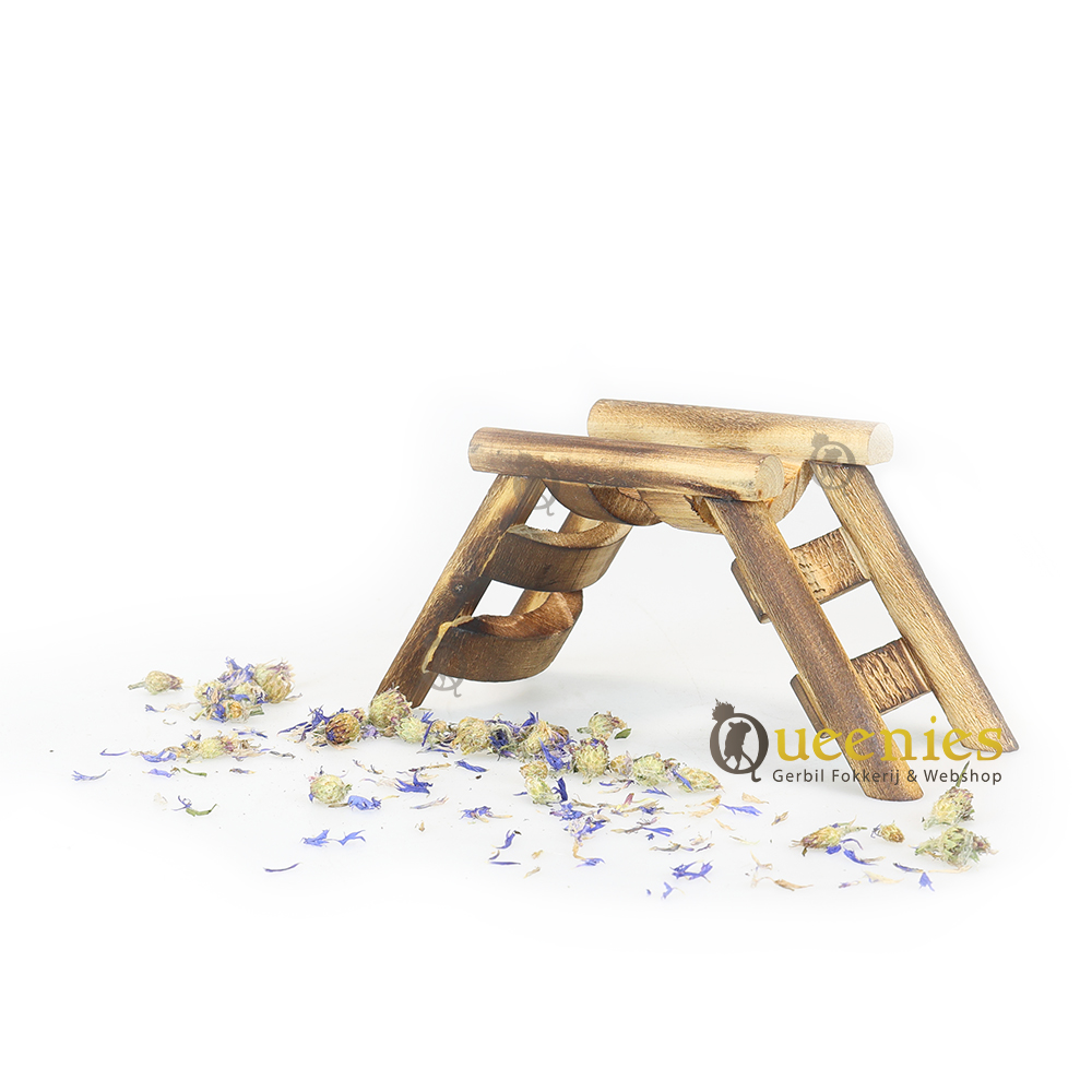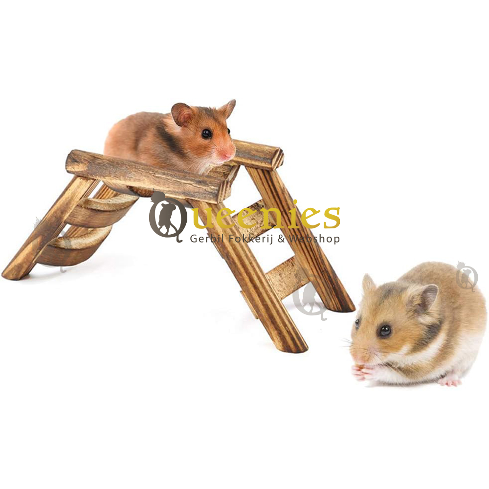 Hamsterscaping is een creatieve manier van het inrichten van een Hamster Terrarium op basis van de natuurlijke leefomgeving van de Hamster. Producten zoals deze Houten Brugladder kunnen hier erg goed voor worden gebruikt. De Brugladder kan bijvoorbeeld als verbindingselement werken. Wilt u een bospad of misschien een riviertje oversteken in de door u gemaakte Hamsterscape? Dan komt deze Brugladder erg mooi van pas. De Brugladder kan dan gebruikt worden door Knaagdieren om over het water heen te lopen, of het bospad spannender te maken. Doordat de Gerbils of andere Knaagdieren over de Brugladder heen moeten klimmen houdt het de dieren ook nog eens in beweging.