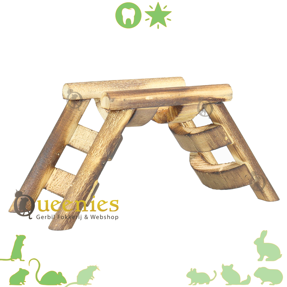 De Houten Brugladder van 18 cm is heel goed te gebruiken als Hamsterscape brug voor Knaagdieren. Door het gebruik van houten materialen heeft de brug een natuurlijke uitstraling wat niet alleen mooi eruit ziet, maar ook goed past in iedere vorm van Hamsterscaping of Landscaping. De Houten Brugladder kan worden gebruikt om een brug over padden te maken in een Hamster Terrarium. Ook kunnen Knaagdieren de Burgladder gebruiken om op te klimmen en klauteren en hiermee hun klimvaardigheden te ontwikkelen. Ook kunnen Gerbils, Muizen en Hamsters zonder problemen aan de Brugladder knagen. Doordat de Burgladder gemaakt is van natuurlijk hout is het veilig voor Knaagdieren.