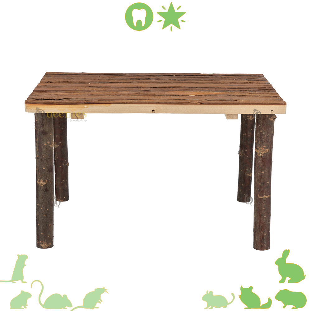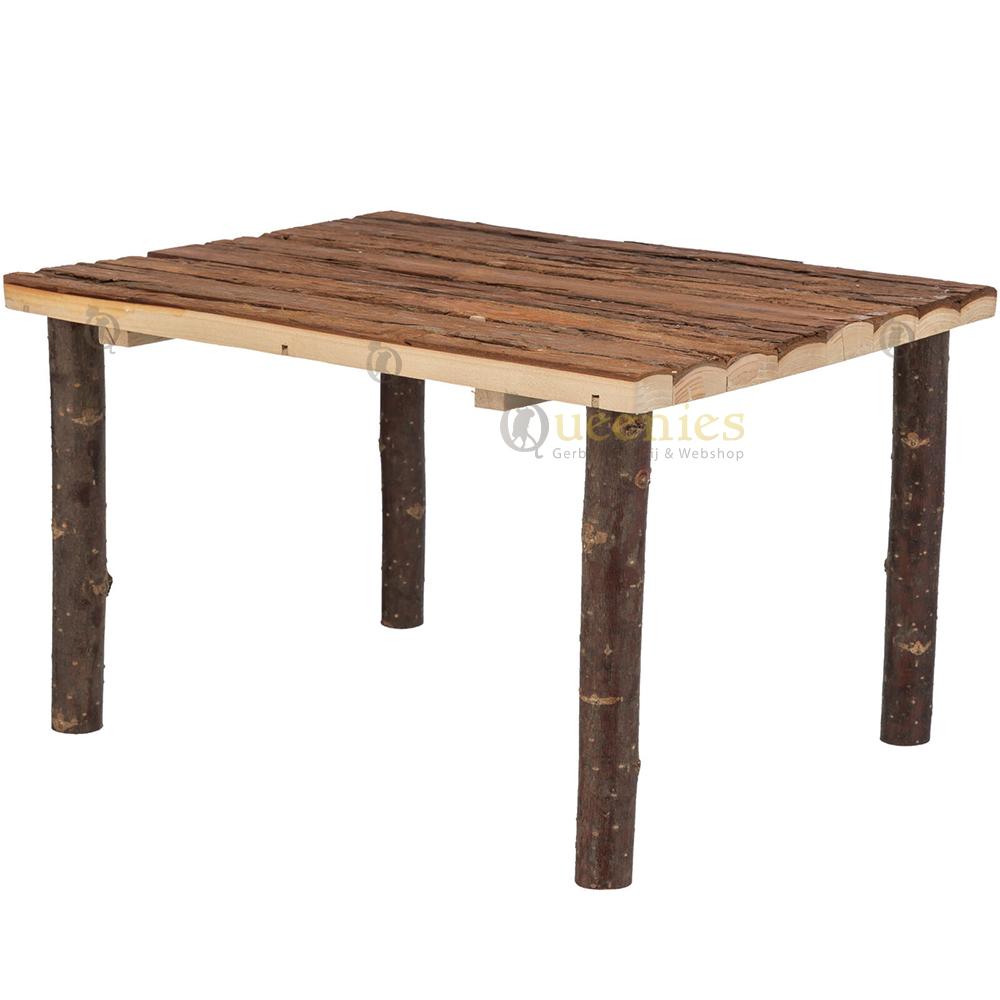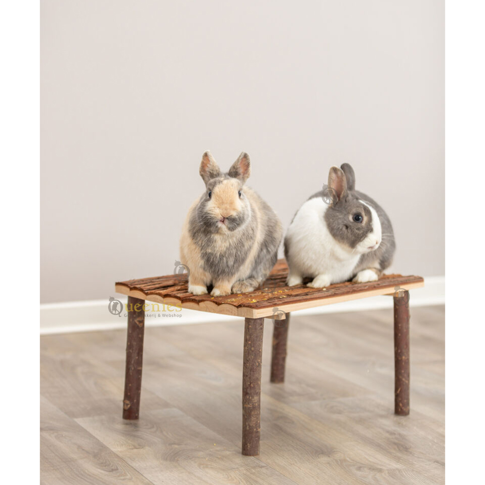 Deze Konijnen Ligplaats 45 cm, gemaakt van Hout kan ook als afdak worden gebruikt. De Ligplaats is groot genoeg dat er twee Konijnen op passen of onder kunnen zitten. Gemaakt van natuurlijk afgewerkt schorshout is het Konijnen Ligplaats een goede toevoeging in elk Konijnen of cavia verblijf. U kunt de Ligplaats gebruiken als verhoging of om dingen onder neer te leggen. De Ligplaats kan ook schaduw maken in het verblijf wat erg fijn is voor Konijnen of andere dieren in de zomer periode.