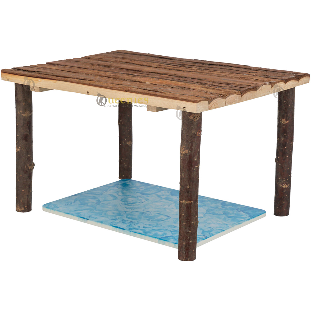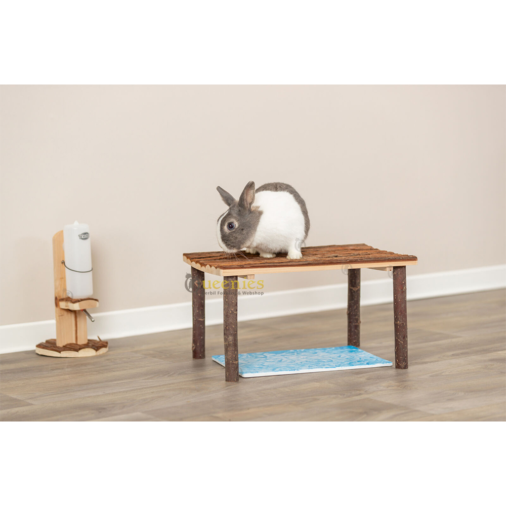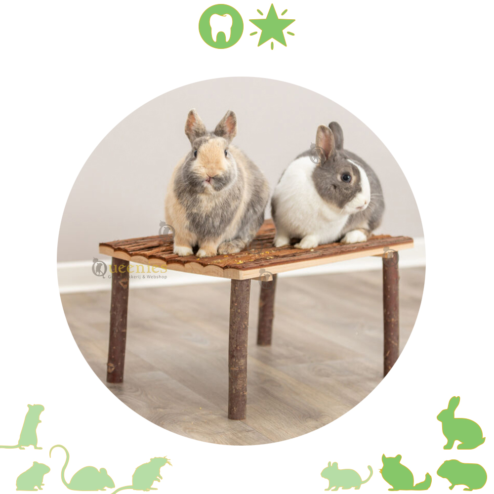 U kunt de Ligplaats ook gebruiken voor andere Knaagdieren zoals Gerbils. Hou er wel rekening mee dat de ligplaats vooral bedoelt is voor Konijnen en daarom aan de hoogte kant is. U kunt de Ligplaats als verhoging gebruiken in een Gerbilarium samen met andere houten plateaus. Op die manier kunnen verschillende Knaagdieren gebruikt maken van de Ligplaats.