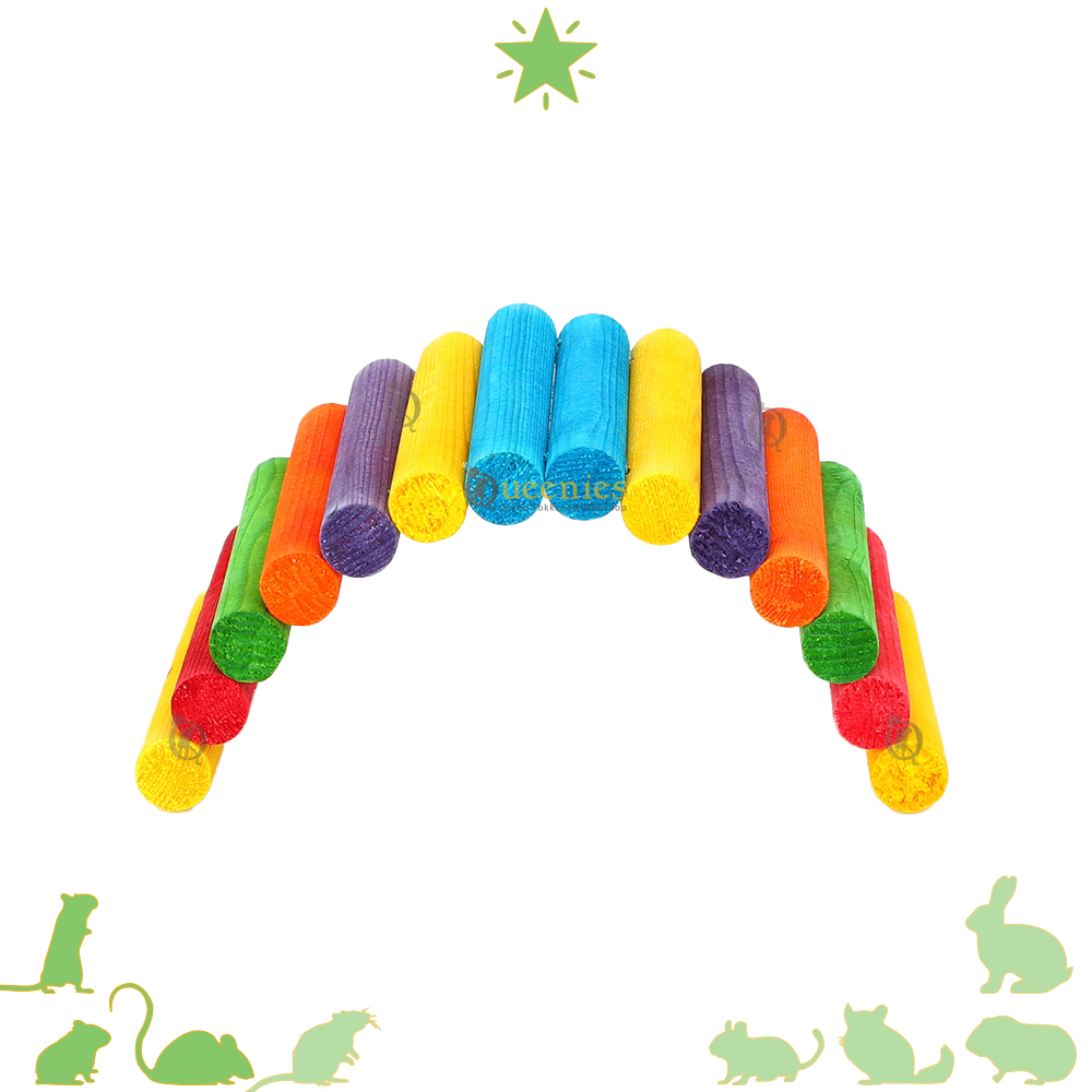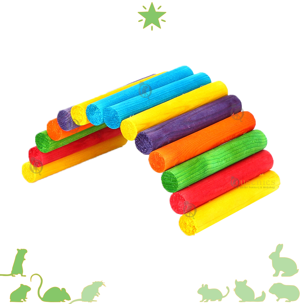 De Regenboogbrug voor Knaagdieren is een speels en kleurrijk product, perfect om de leefomgeving van je knaagdieren op te fleuren. Deze brug gemaakt van natuurlijk houten stokken in felle kleuren, biedt knaagdieren zoals Gerbils, Hamsters en Muizen een ideale plek om te spelen. Van een rechte loopbrug tot een avontuurlijke boog: met deze Regenboog tunnel kun je de leefomgeving telkens veranderen. Het hout is volledig veilig voor knaagdieren om aan te knagen.