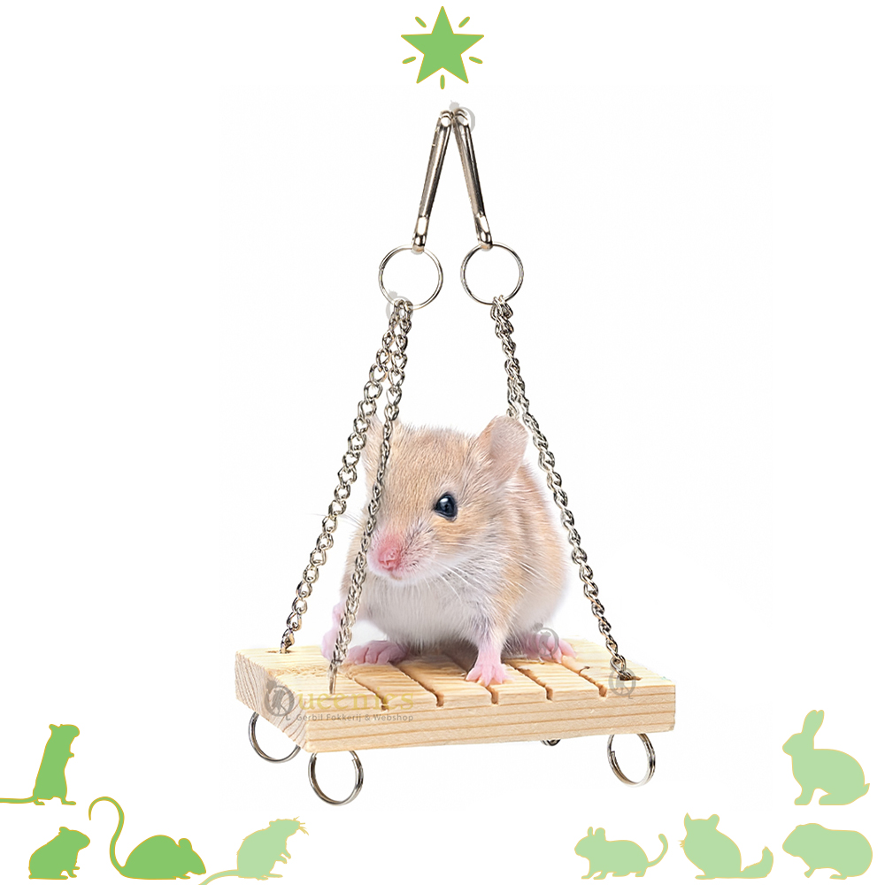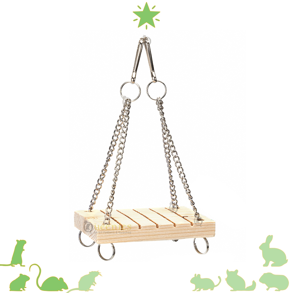 Deze Speel Schommel voor Knaagdieren geeft Gerbils, Muizen en andere kleine klimmers een geweldige speelervaring. Het biedt ontspanning en stimuleert beweging en balans! De stevige houten plank, opgehangen aan duurzame metalen kettingen, zorgt voor een veilige en plezierige speelplek in iedere kooi. De Speel Schommel voegt een speelse en natuurlijke uitstraling toe, en zorgt ervoor dat nieuwsgierige Knaagdieren zich geen moment vervelen. Hamsters zijn van nature geen klimmers en kunnen moeite hebben met het evenwicht op de schommel. Het is belangrijk om voorzichtig te zijn bij het plaatsen van de schommel in hun Terrarium en ervoor te zorgen dat het op een lage hoogte hangt om valpartijen te voorkomen. Zo kan ook de Hamster veilig genieten van de Houten Schommel.