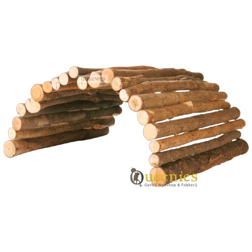 De Wilgenbrug M is gemaakt van zeer stevig materiaal en zal niet inzakken of doorbuigen. Zelfs niet wanneer er een grote Chinchilla op springt. De Wilgentakken zijn stevige takken en het ijzeren koord wat door de takken is geregen is erg dik en dus ook erg stevig. Een Gerbil of grote Syrische Hamster, grote Ratten kunnen hier moeiteloos overheen lopen zonder dat de Wilgenbrug M instort of doorbuigt. Met de Wilgenbrug kunt u echt alle kanten op en is een product wat eigenlijk altijd in uw Gerbil kooi zou moeten hebben / 1 van in voorraad moet hebben. Ook zeker vanwege de lage prijs van dit mooie product en alle mogelijkheden die u heeft met de Wilgenbrug. Een kleine opsomming van de mogelijkheden zijn: