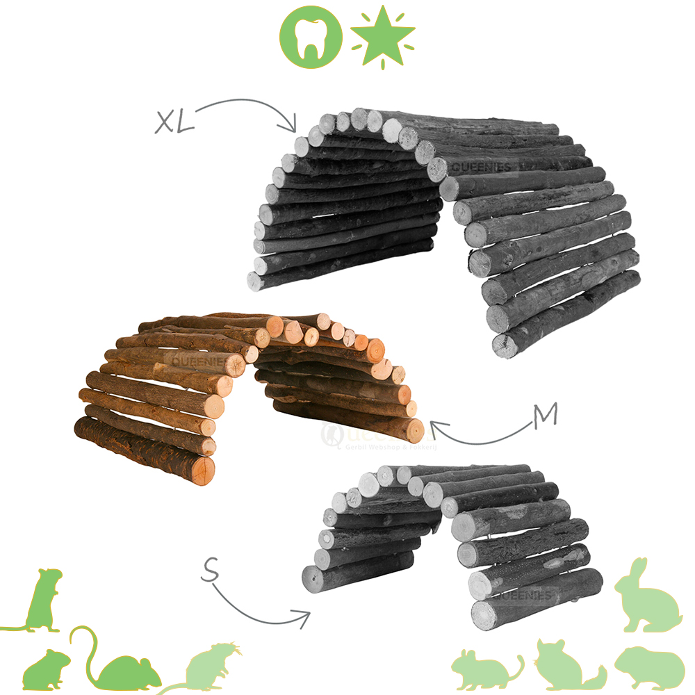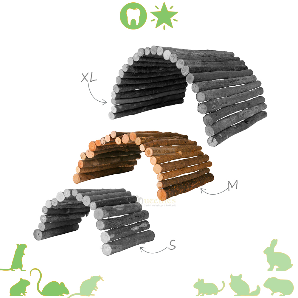 - Inge: Mooi, leuk en stevig product met een natuurlijke uitstraling. Goede prijs/kwaliteit verhouding. Zelf heb ik geen gerbils maar bij mijn Japanse kwartels komen deze wilgenbruggen ook goed tot hun recht. Ik heb zowel de M als de XL
