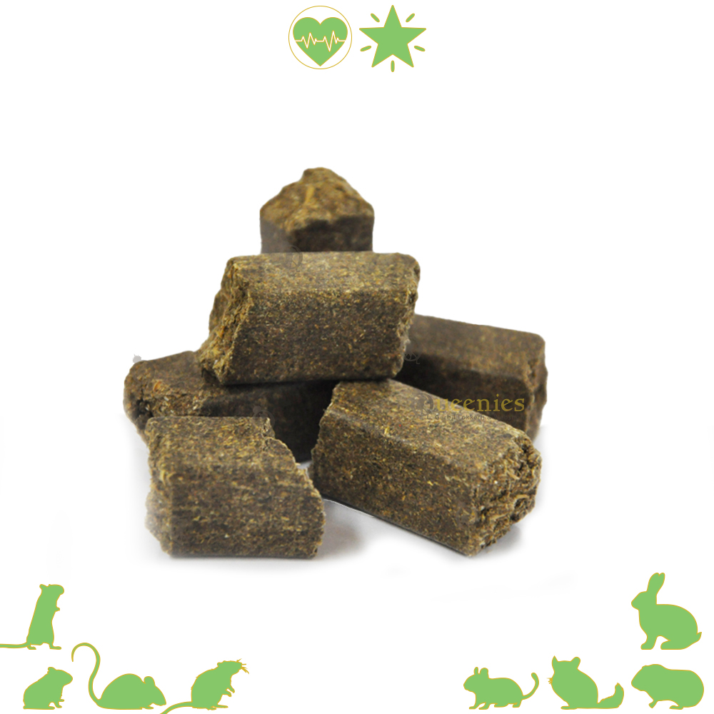 Samenstelling: Luzerne, Tarwegies, Gerst, Melassemais, Calsiumcarbonaat, Tuinbonenkruid, Kamille, Salie, Hazelnootblad, Brandnetel, Koriander, Wilde Organo