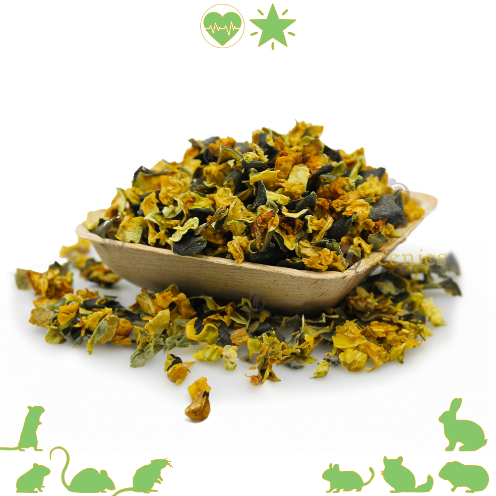 Inhoud: 100 gram│500 gram│1000 gram Samenstelling: 100% pure gedroogde Courgette Analytische bestandsdelen: - Geschikt voor: Knaagdieren en Konijnen, Gerbils, Dwerghamster, Goudhamster, Muizen, Ratten, Chinchilla's, Degoes,