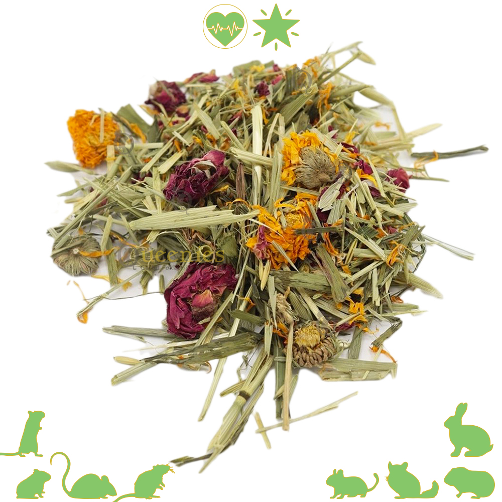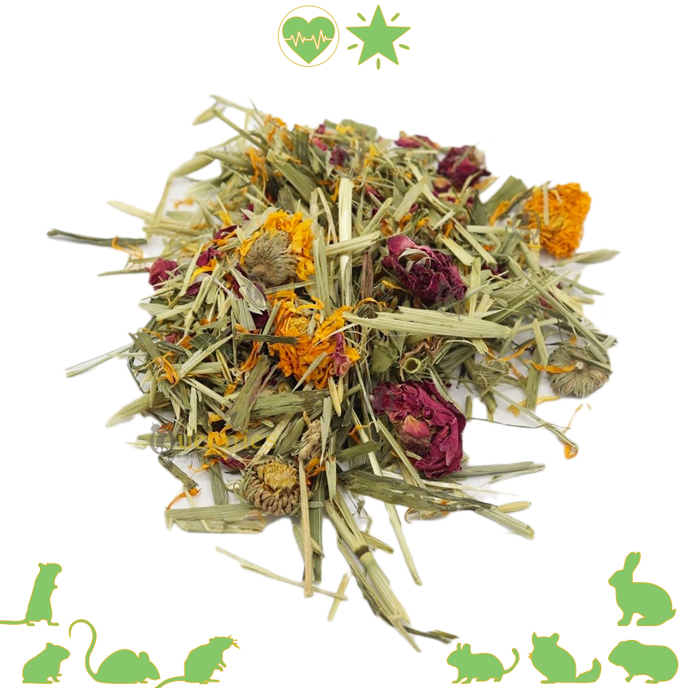 De meeste dieren eten in de natuur afwisselend grassen, bloemen, bladeren en kruiden. Daarom past deze Gedroogde Bloemen mix ook zo goed in bij het dagelijks menu van onze huisdieren. Om het natuurlijke voedselpatroon in gevangenschap zo goed mogelijk te stimuleren en na te bootsen is het raadzaam dit voedingssupplement ( of dierenkruid ) aan het dieet of menu van uw Gerbils toe te voegen, maar ook om af te wisselen met verschillende soorten gedroogde grassen en kruiden uit deze categorie. Probeer zoveel mogelijk verschillende gedroogde grassen met elkaar af te wisselen en ontdek wat uw huisdier het lekkerst vindt. Iedere gedroogde grasssoort heeft zijn eigen goede eigenschappen.