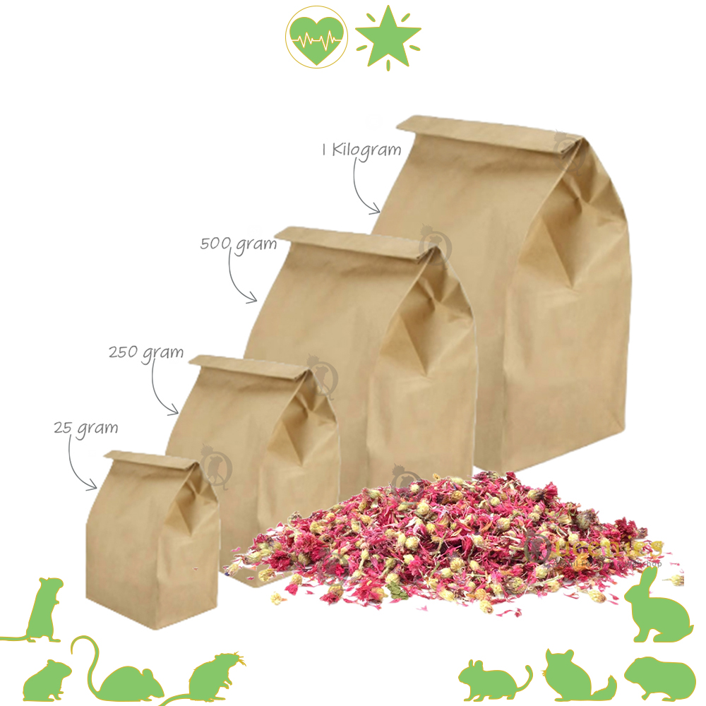 Onze Gedroogde Rode Korenbloemen zijn van de hoogste A kwaliteit zodat ze ontzettend mooi fel gekleurd zijn en zodat het hele bloemen zijn ipv restmateriaal. Doordat het A kwaliteit is zijn ook de meeste voedingsstoffen bewaard gebleven in de Korenbloemen. Gebruik deze voedingssupplementen dagelijks als voedselverrijking of aankleding van het Gerbil terrarium.