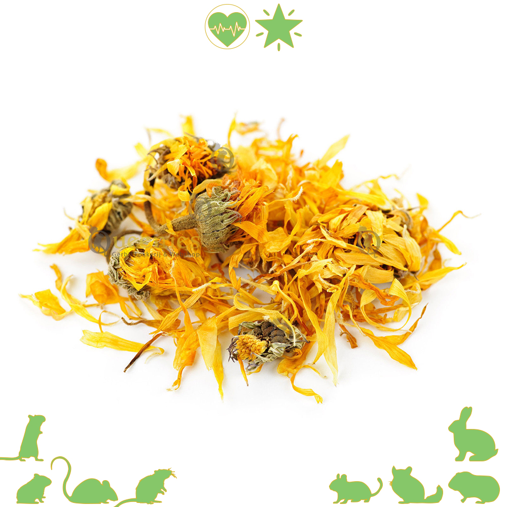 Gedroogde Goudsbloemen worden gezien als een natuurlijke kruidenpreparaat bij Knaagdieren en Konijnen.