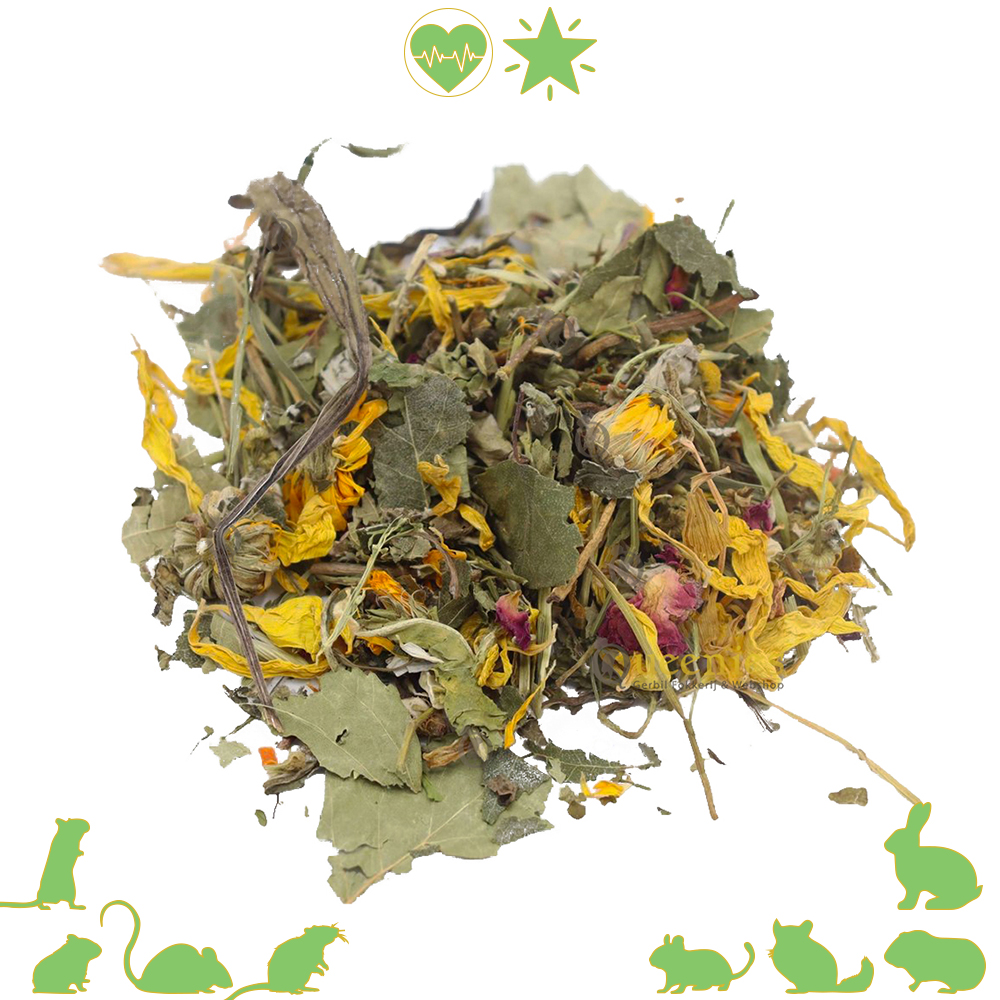 Deze Kalmerende Bladmix is een samenstelling van bladeren die bij draagt aan een ontspannen, stessloos Knaagdier of Konijnen. Dit komt omdat er ingrediënten zijn gebruikt die ervoor zorgen dat Knaagdieren minder stres ervaren.