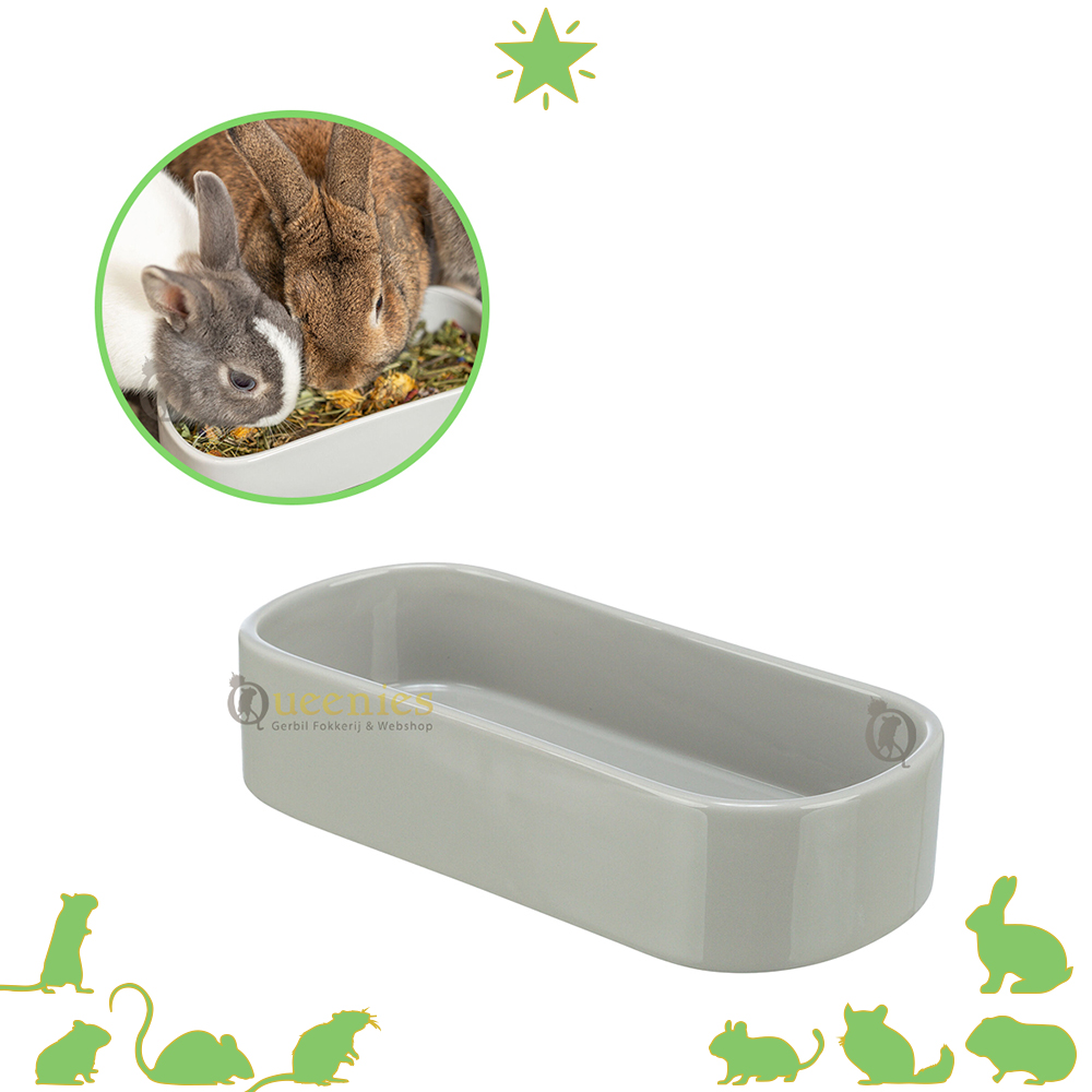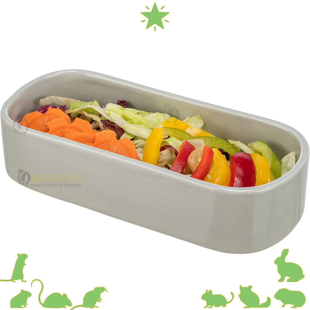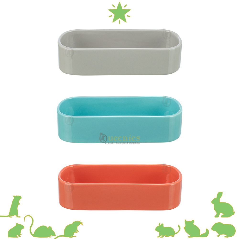 Afmetingen: 600 ml / 22 × 10 cm Materiaal: Keramiek Inhoud: 1 stuk (Wij krijgen dit product vanuit de leverancier in de mix binnen, hierdoor is een kleurkeuze niet mogelijk.) Geschikt voor: Knaagdieren en Konijnen, Gerbils, Hamsters, Muizen, Ratten, Degoe, Cavia, Chinchilla en Konijnen
