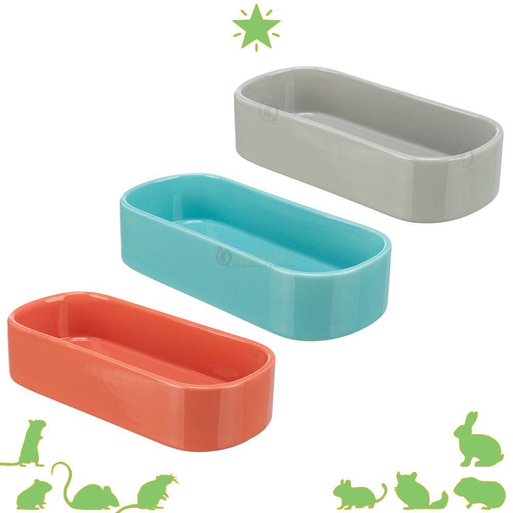 De Keramische water – voerschaal is verkrijgbaar in 3 stijlvolle verschillende kleuren, Grijs, Blauw en Rood. De opvallende kleuren zorgen ervoor dat het duidelijk te zien is wanneer de schaal leeg is en bij gevuld moet worden. Dit is makkelijk manier om in te gaten te houden wat de Knaagdieren en Konijnen nou precies op een dag binnen krijgen. De Schaal heeft ook een ruime afmeting van 17 cm lengte, 7,5 cm breedte en 4 cm hoogte. Door de grote is er voldoende ruimte voor voedsel en of water, Knaagdieren en Konijnen kunnen hierdoor ook makkelijk uit de Schaal eten of drinken. De Keramische water – voerschaal blijft dankzij het gewicht stevig op zijn plek staan. Zelf wanneer de dieren eruit aan het eten zijn. De schaal zal hierdoor binnen snel worden omgestoten waardoor het verblijf een stuk schoner blijft. Ook is de Schaal perfect te gebruiken voor meerdere Knaagdieren. Heeft u bijvoorbeeld meerdere Hamsters, dan kan deze Schaal makkelijk worden gebruikt als een voerbak.