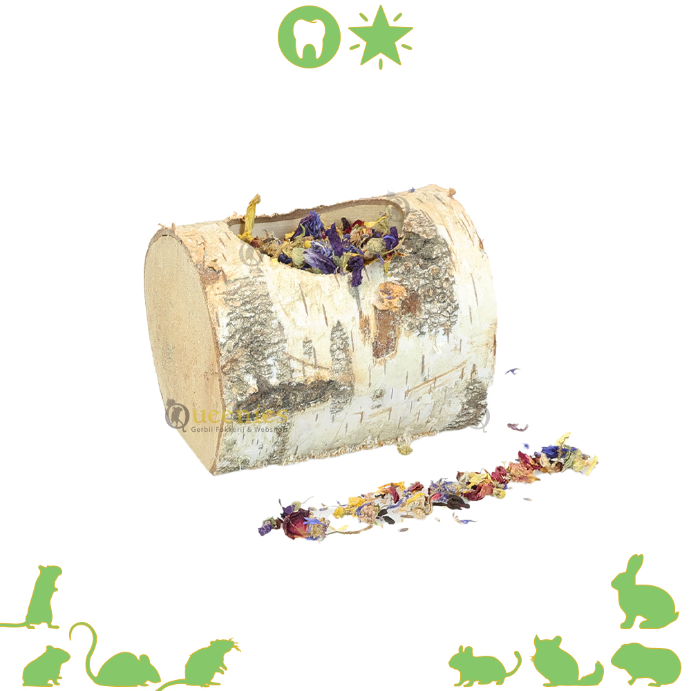 Deze kruidenbak, gemaakt van hoogwaardig berkenhout, biedt uw huisdieren een heerlijke plek om te knagen en te verkennen. De kruiden voerbak kan gevuld worden met heerlijke verse bladeren of Goudsbloemen, maar ook met droogvoer. Niet met verse groente en fruit om schimmel te voorkomen.