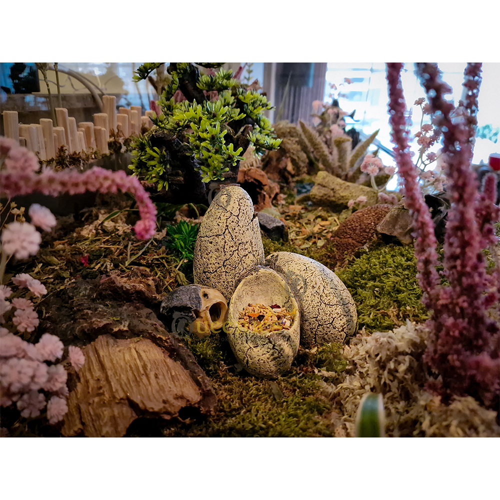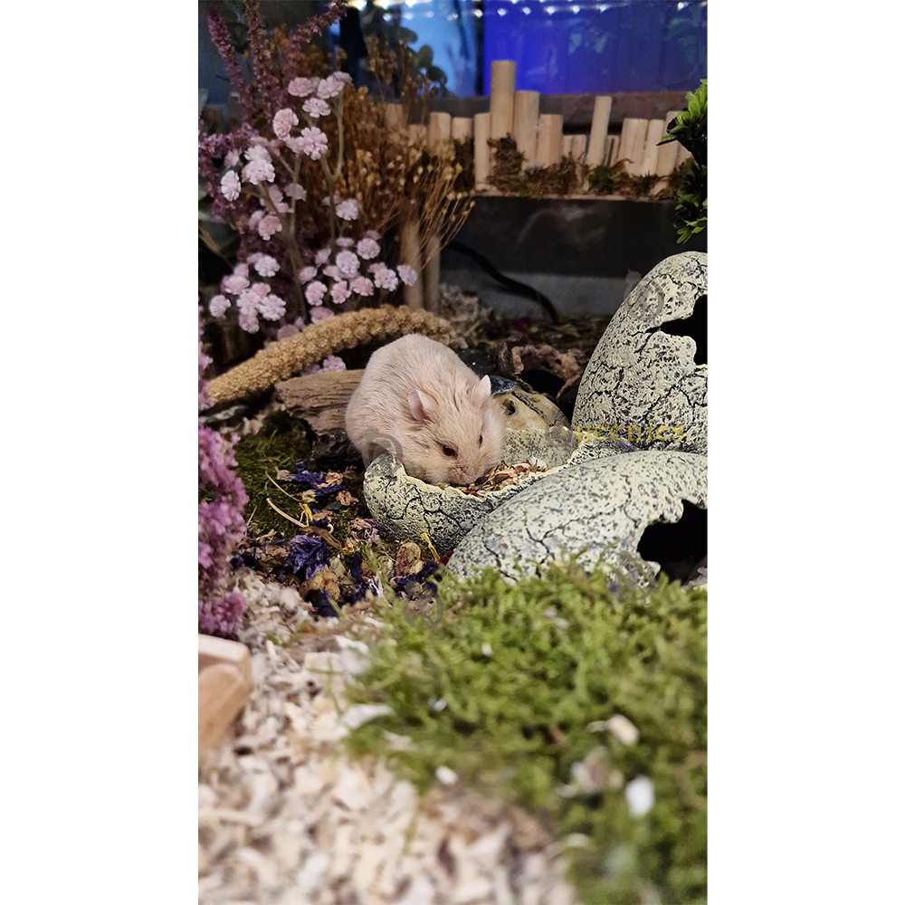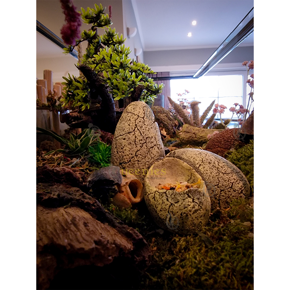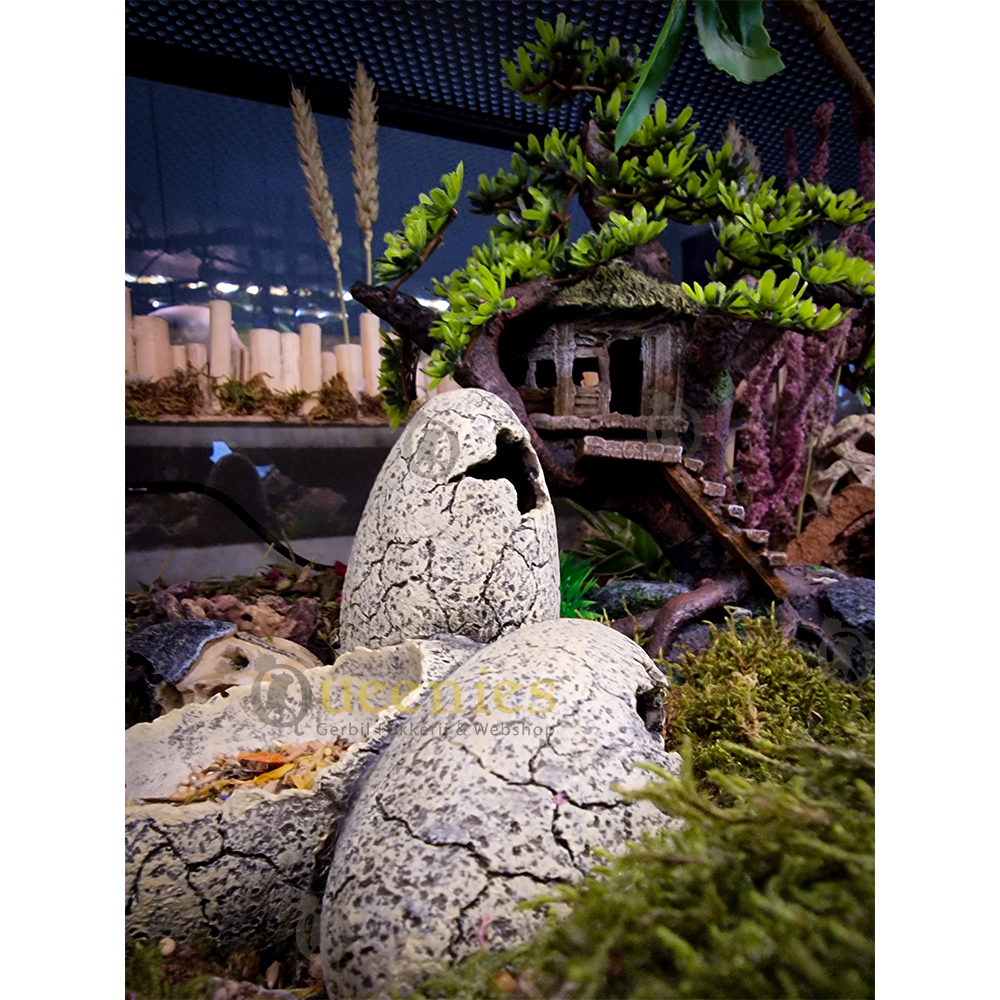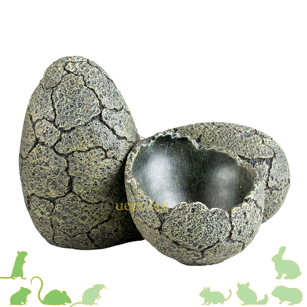 Deze Dinosaurus eieren kan gebruikt worden als voer of Drinkschaal in een Jurassic Theme Hamsterscape omgeving. Om de 6 weken maken we bij Queenies een nieuw Hamsterscapings thema, in Maart 2024 was dit het Jurassic Park Thema! Daarbij kwamen deze Dinosaurus eieren goed tot zijn recht. Een erg leuk voerschaaltje voor bijvoorbeeld Dierenkruiden in te leggen, of kleine snacks in te verstoppen!