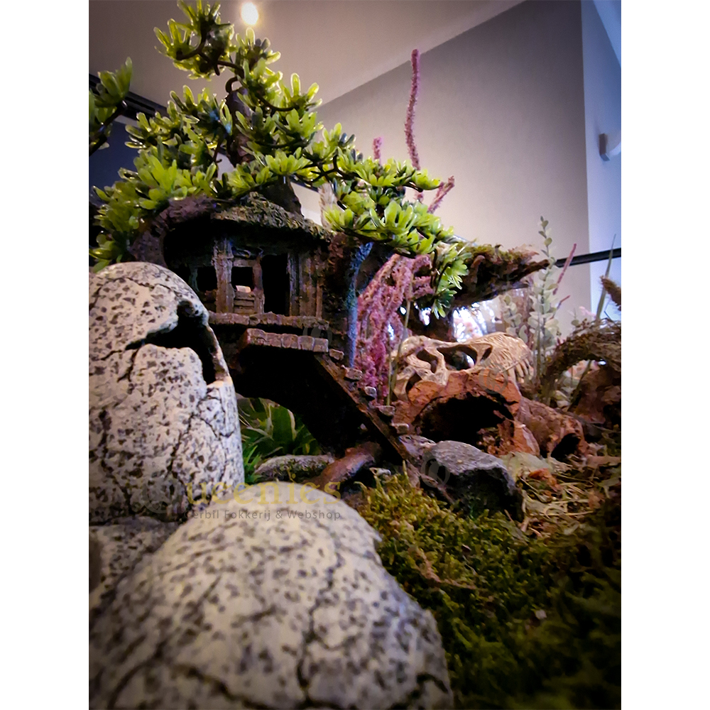 Afmetingen: 11 x 14 x 11 ( L x B x H ) Materiaal: KunstharsGeschikt voor: Hamsterscaping en of kleine Knaagdieren zoals Gerbils, Dwerghamsters, Goudhamsters en Muizen | Jurassic Park scape