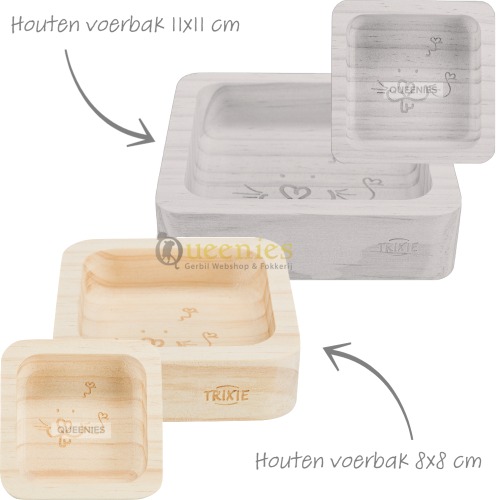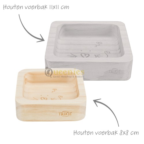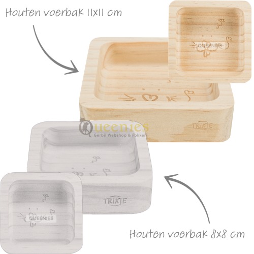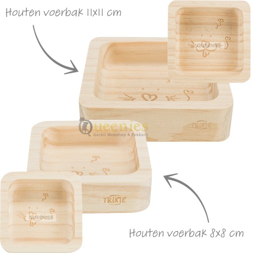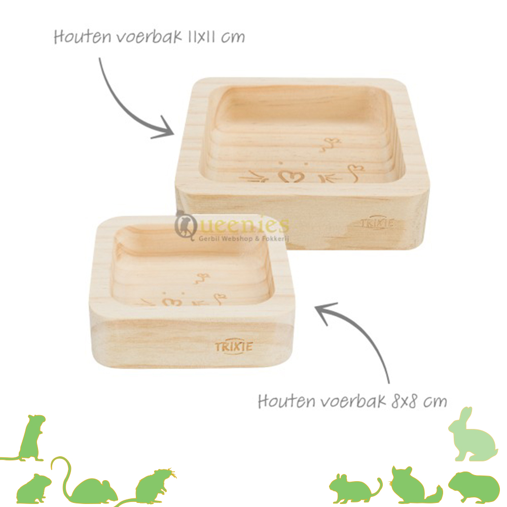 Houten voerbak in 2 verschillende maten voor Dwerghamsters of Gerbils. In deze houten Knaagdieren voerbakken zijn geschikt voor droogvoer en of snacks. Gemaakt van onbehandeld blank hout. Het hout is wel geschuurd, u kunt er geen splinters van in de vingers krijgen.