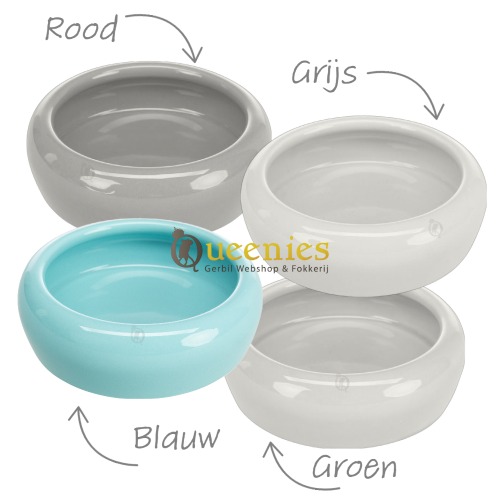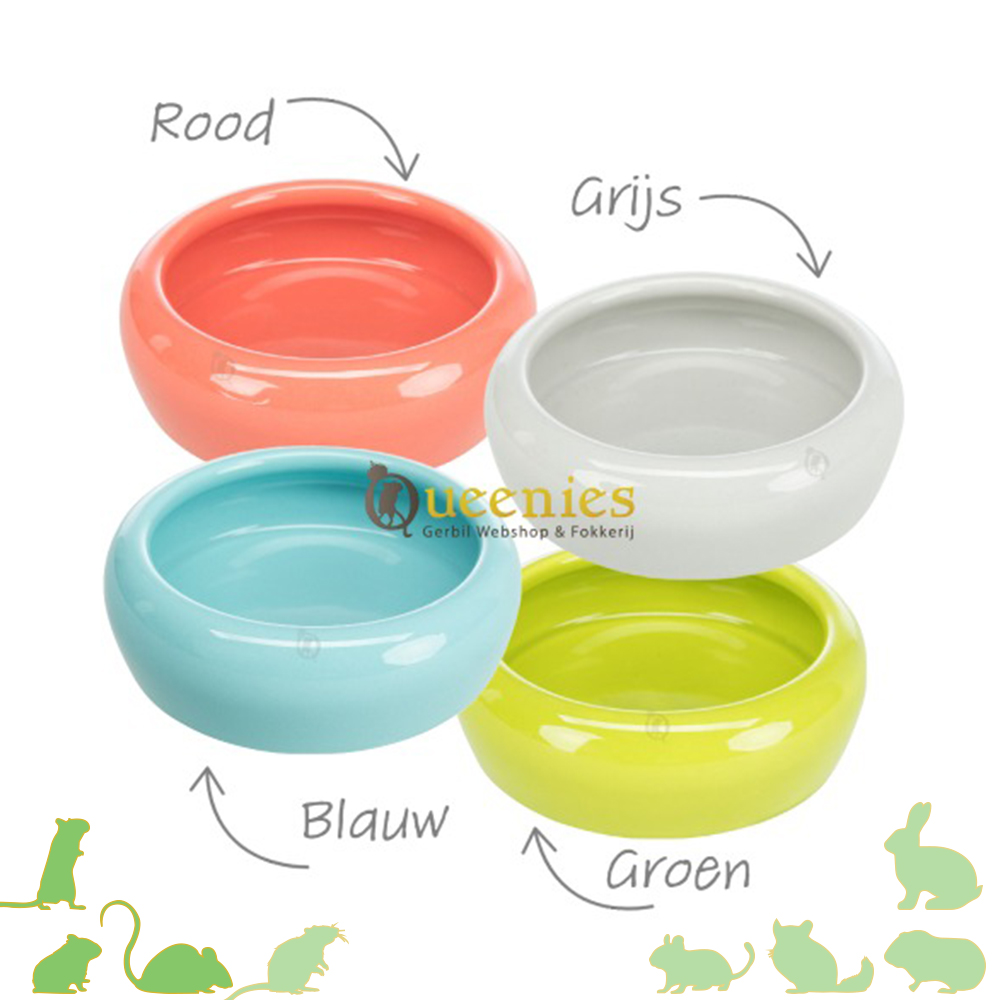 Afmetingen: 10 x 10 cm Diameter: Ø 10 Inhoud: 100 ml Materiaal: Keramiek in 4 verschillende kleuren Geschikt voor: Kleine Knaagdieren zoals Muizen, Gerbils, Dwerghamsters