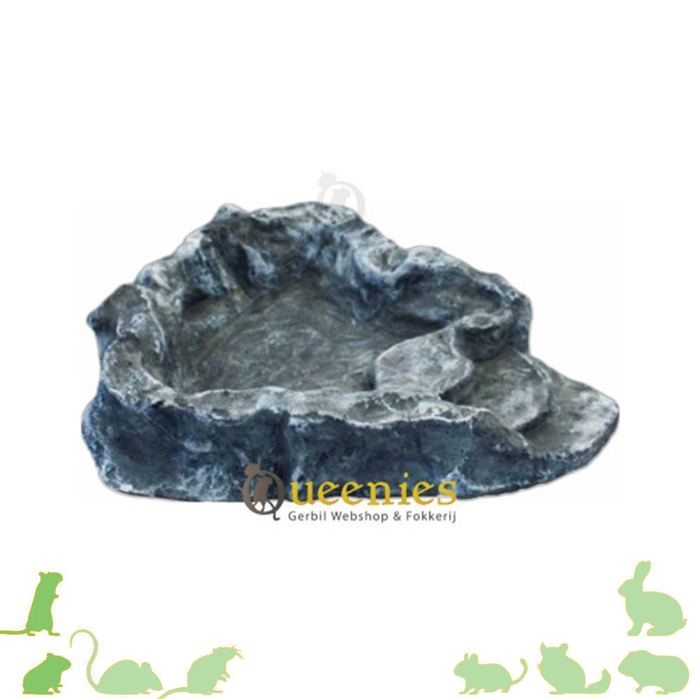 Deze bak kan worden gebruikt als drink- of voerbak. Het stenen uiterlijk ziet er realistisch uit en gaat met gemak op in de omgeving. Het trapje biedt uw huisdier gemakkelijke toegang.